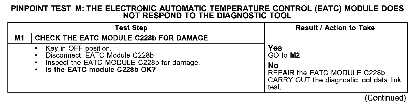 PINPOINT TEST M: THE ELECTRONIC AUTOMATIC TEMPERATURE CONTROL (EATC) MODULE DOES NOT RESPOND TO THE DIAGNOSTIC TOOL