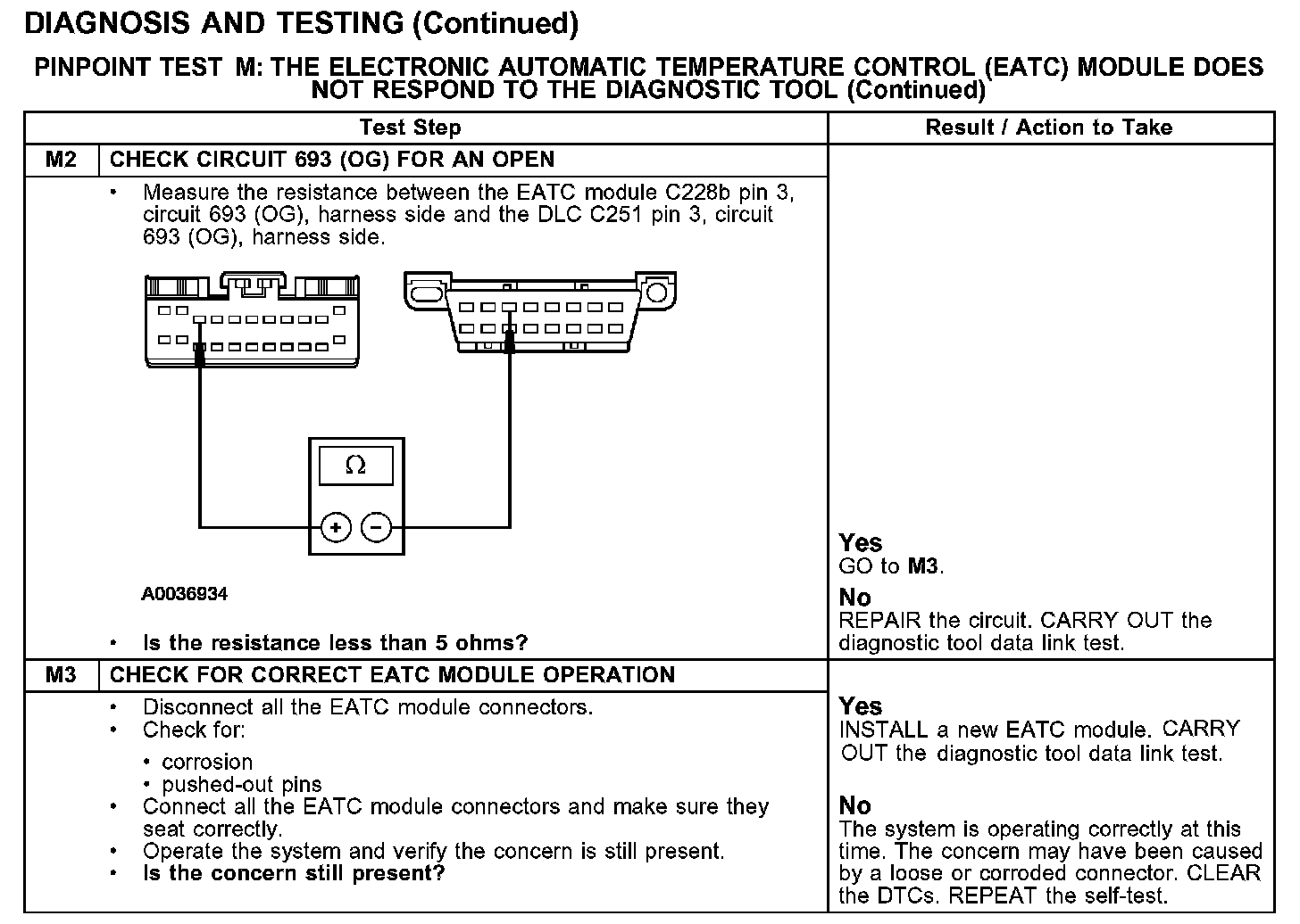 Test M: The Electronic Automatic Temperature Control (EATC) Module Does Not Respond to the Diagnostic Tool