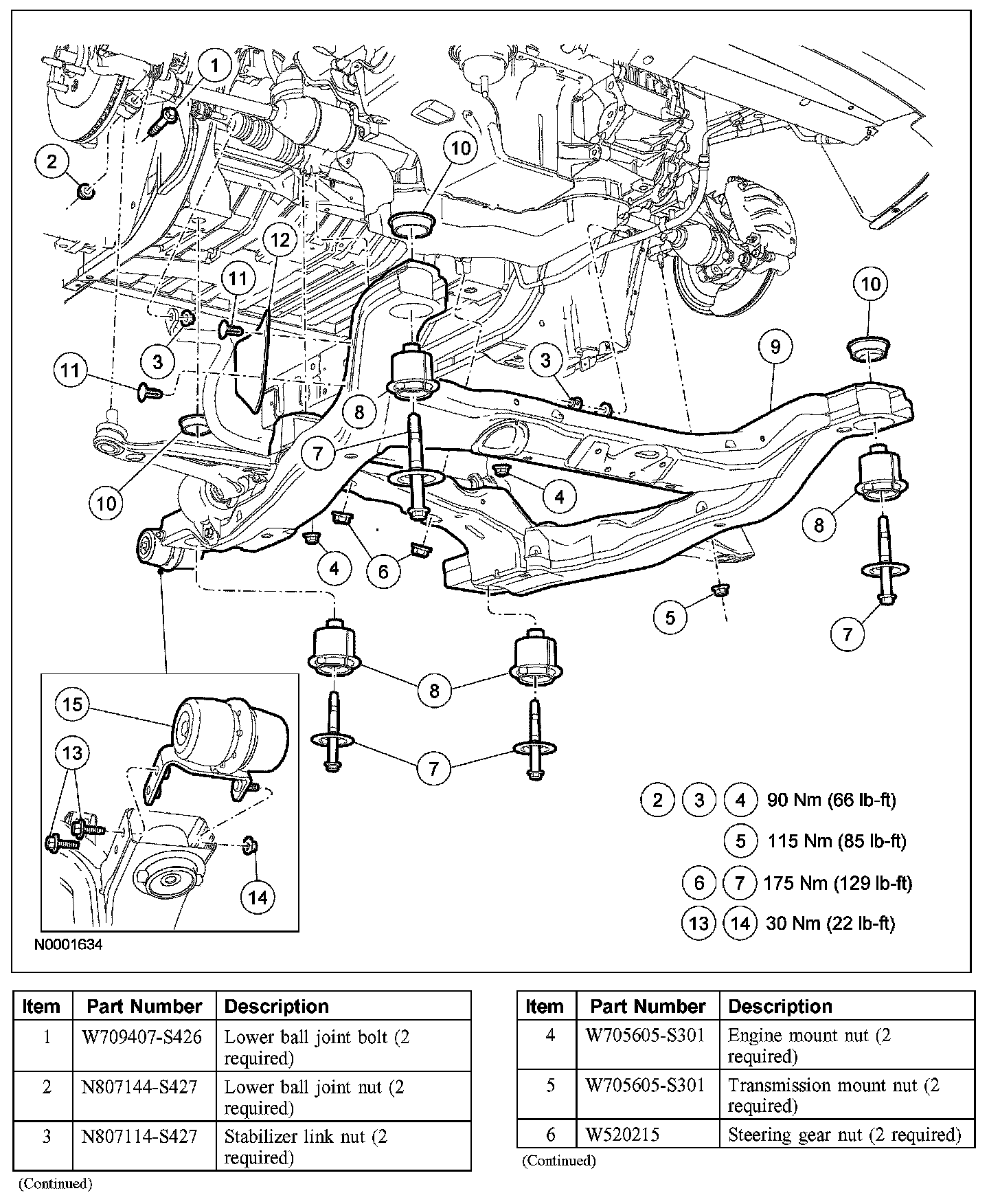 NOTE: The subframe bushing, body mount, bolt and washer are installed as a kit.