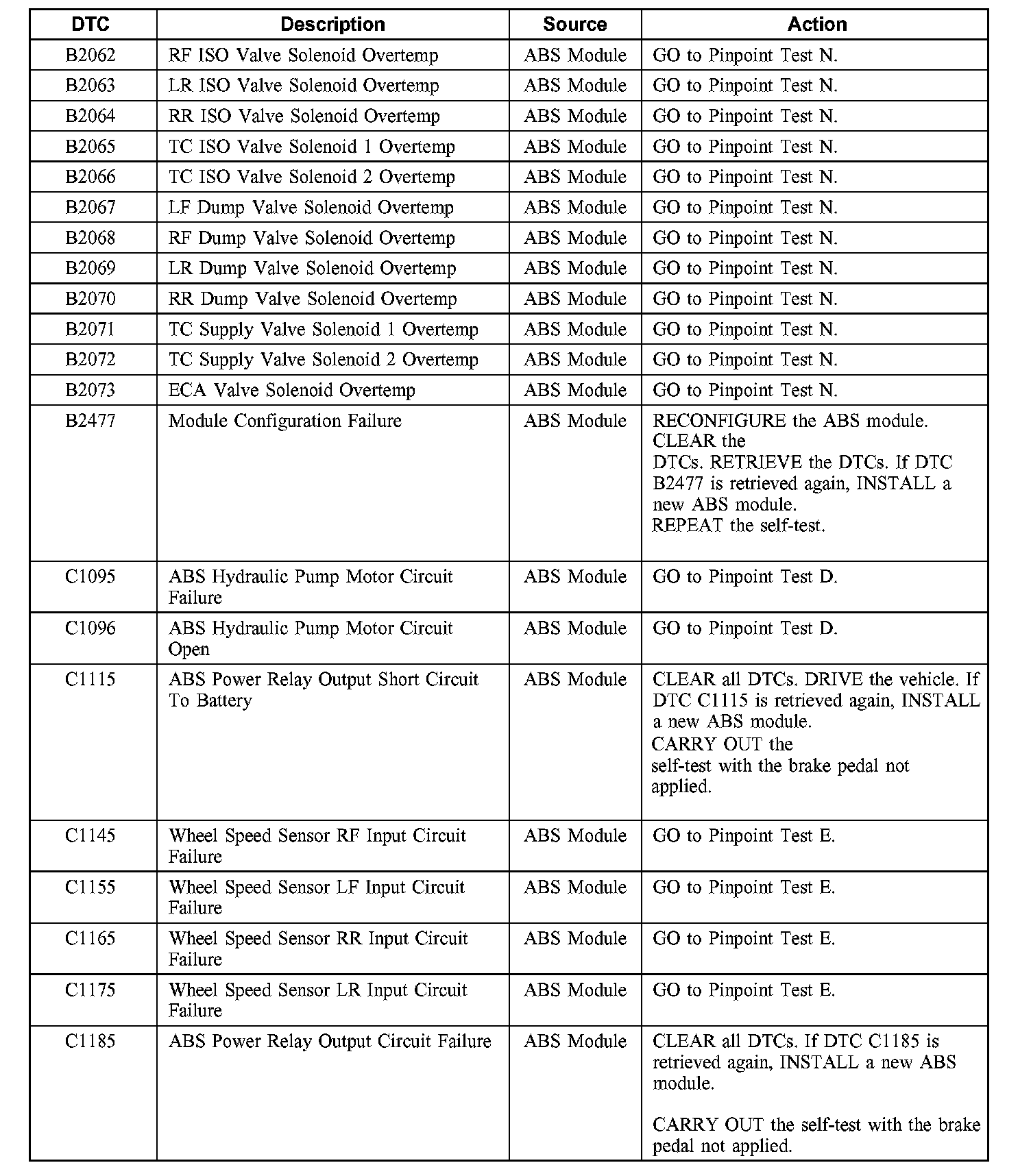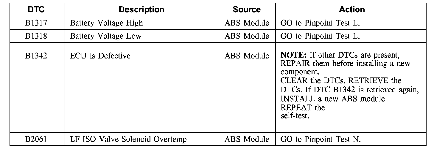 Anti-Lock Brake System (ABS) Module Diagnostic Trouble Code (DTC) IndexDTC B1317 - B2061: