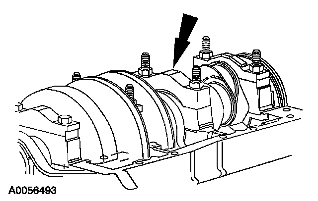 Main bearing journal-to-cylinder block clearance - allowable 0.013-0.058 mm (0.0005-0.0023 in.)
