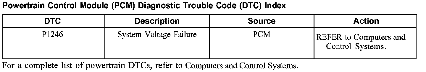 Powertrain Control Module (PCM) Diagnostic Trouble Code (DTC) Index