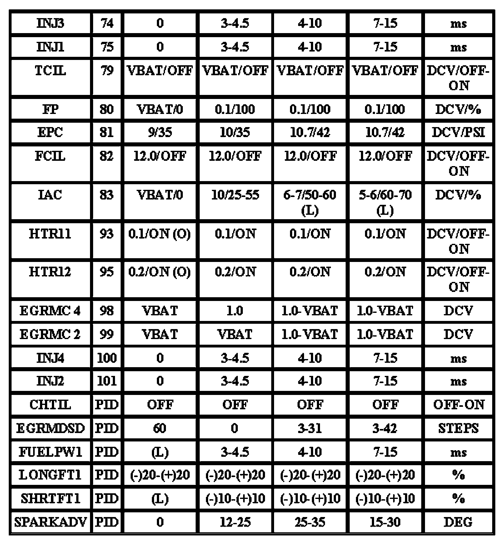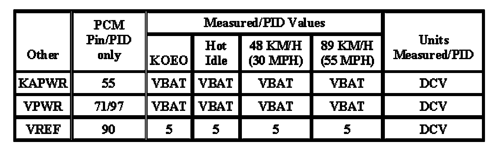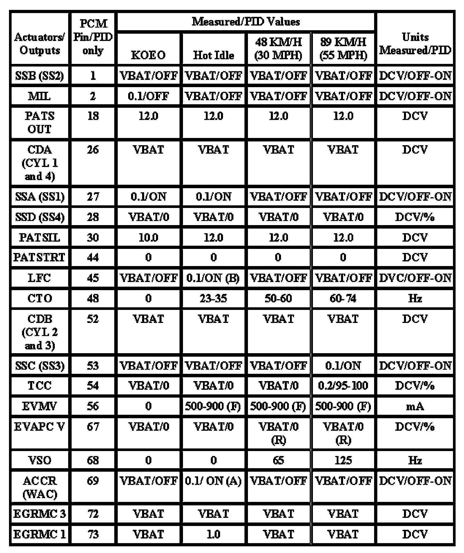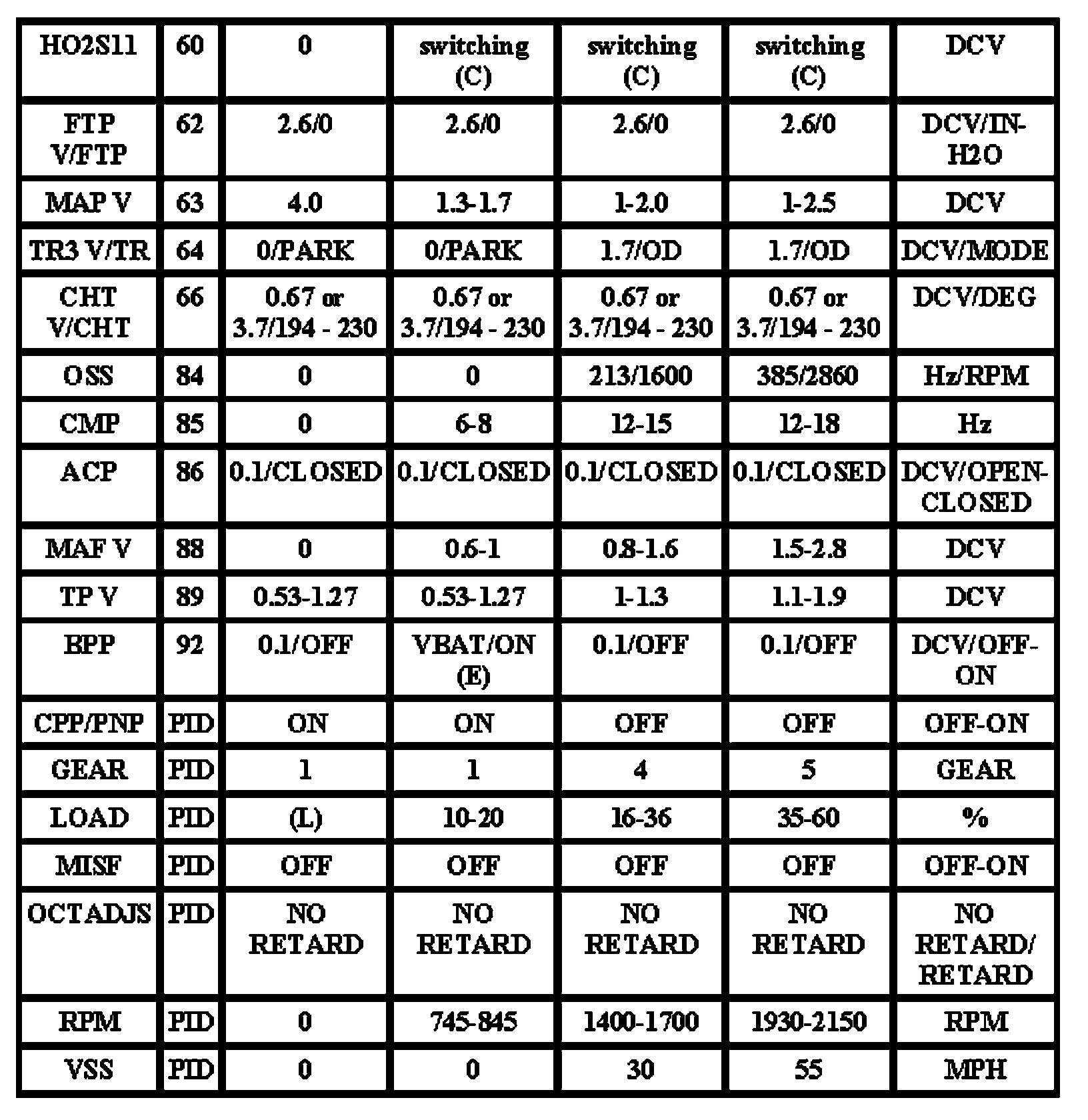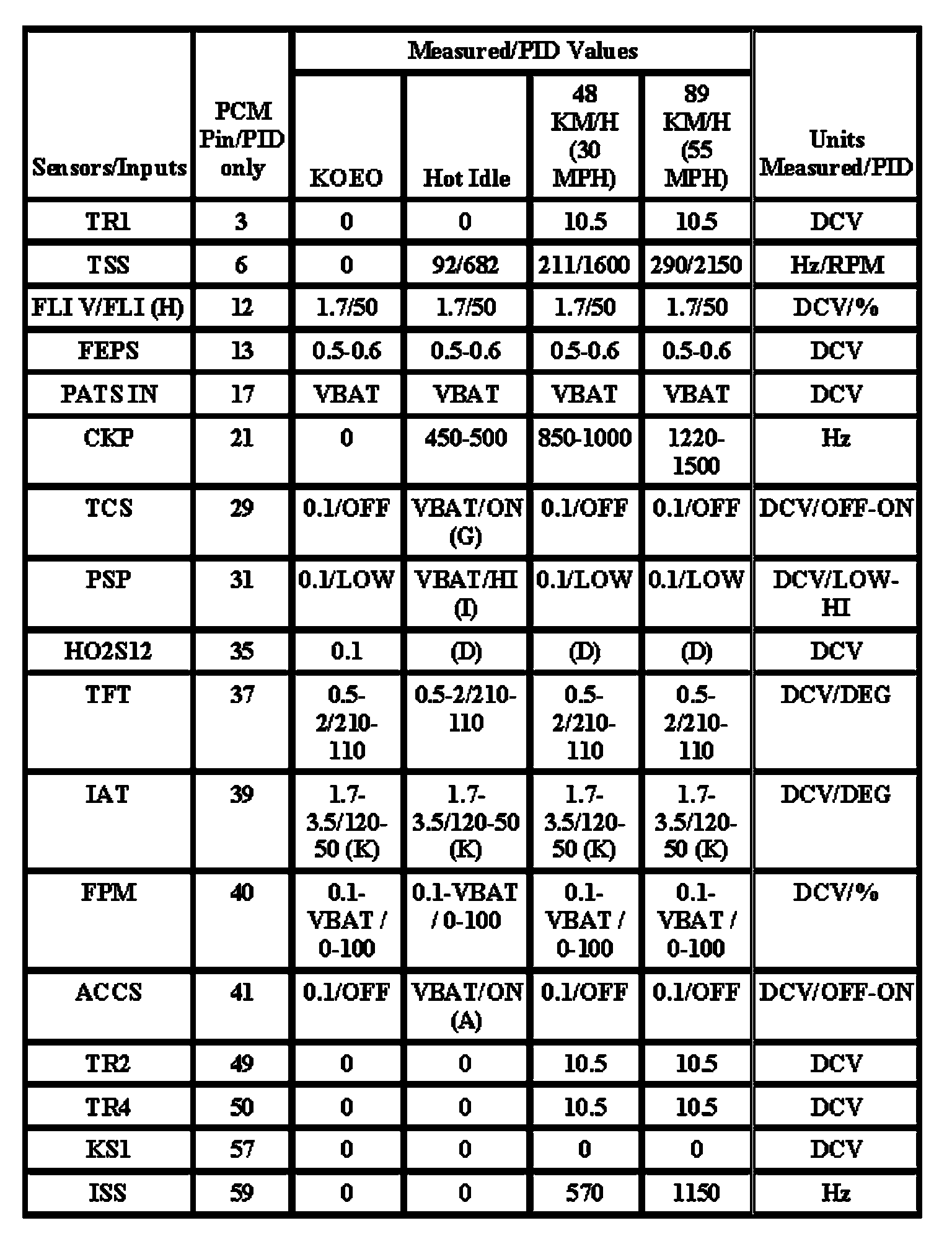 Note: All generic OBD readings under no load (PARK or NEUTRAL).