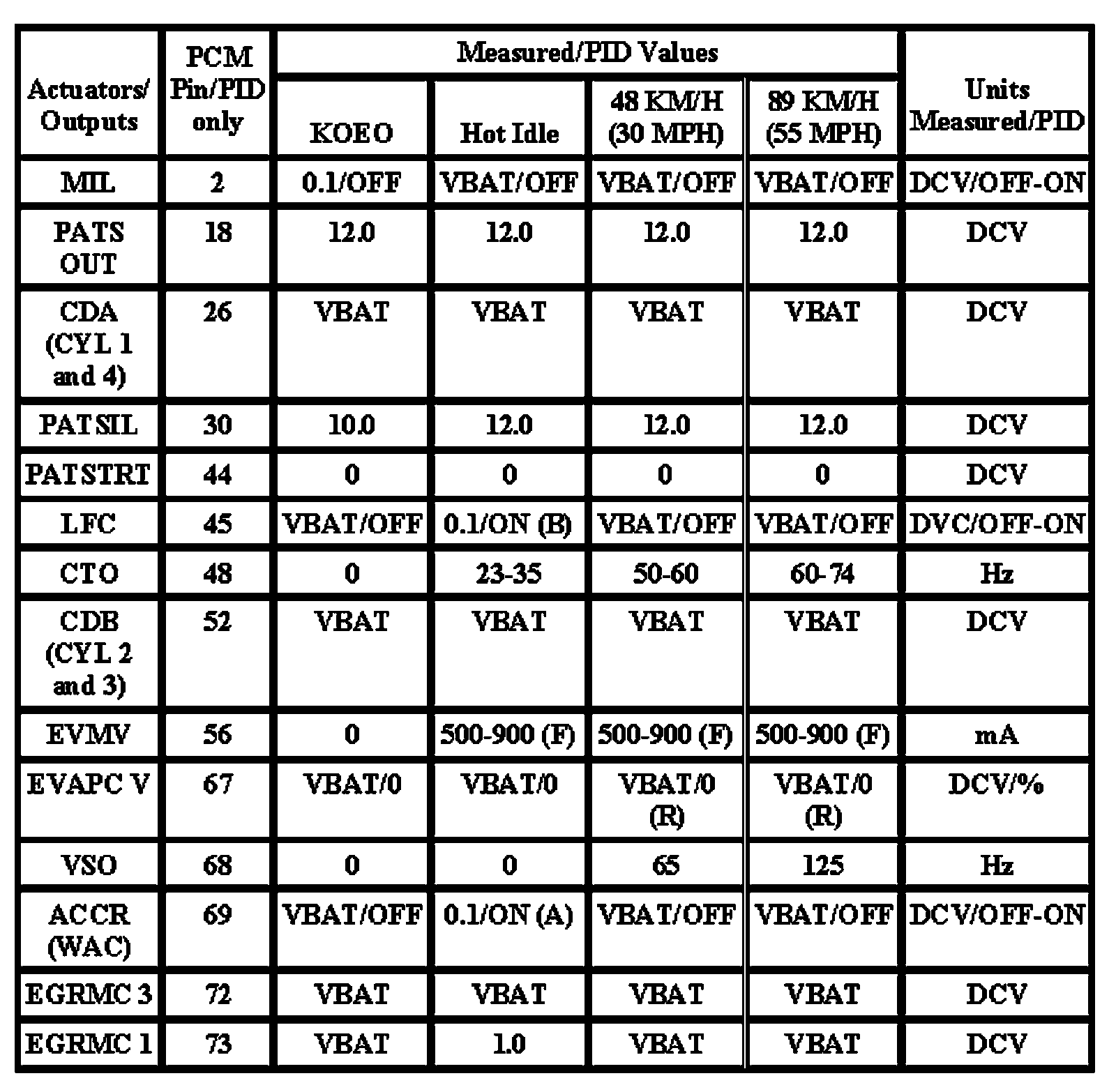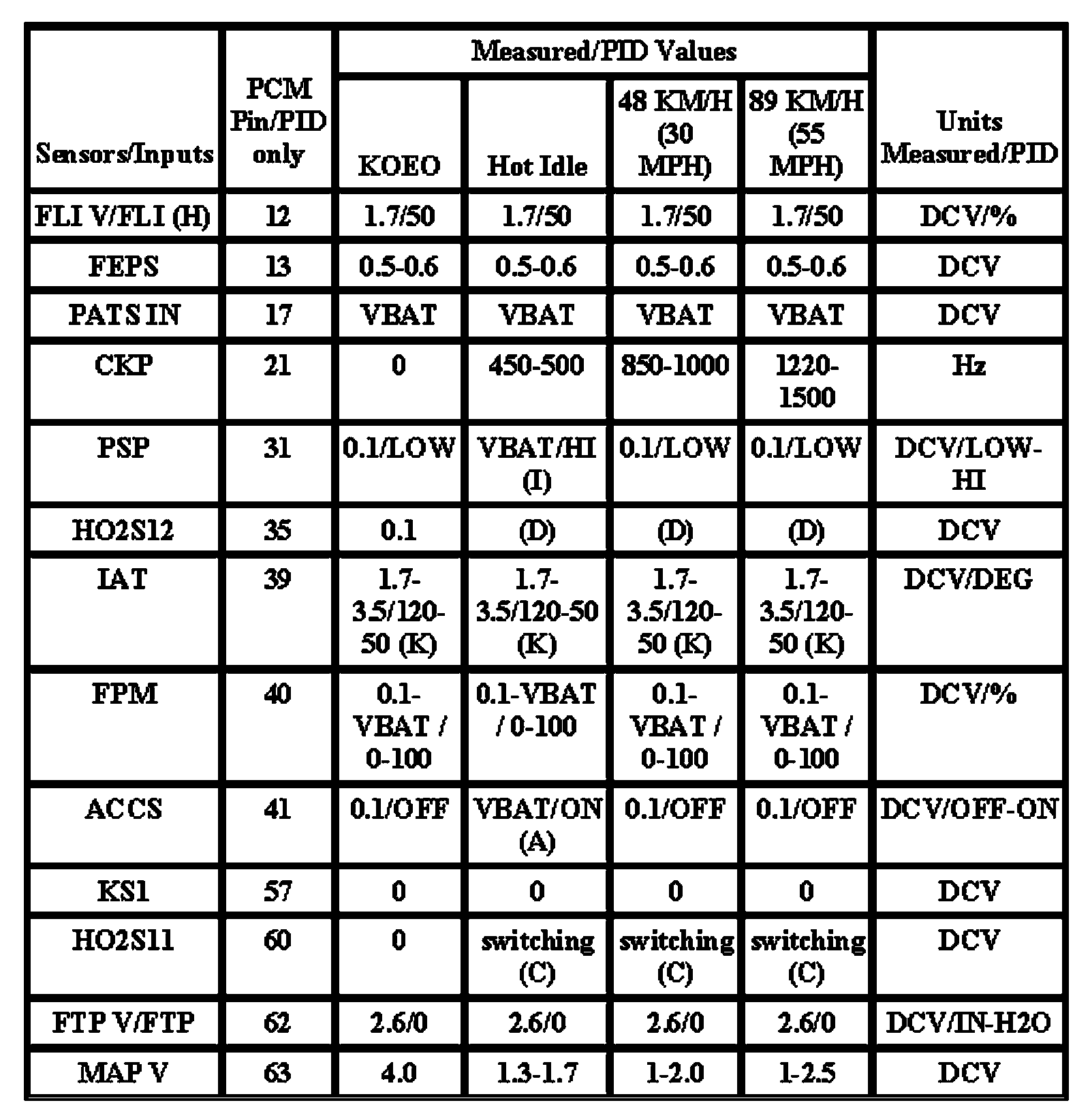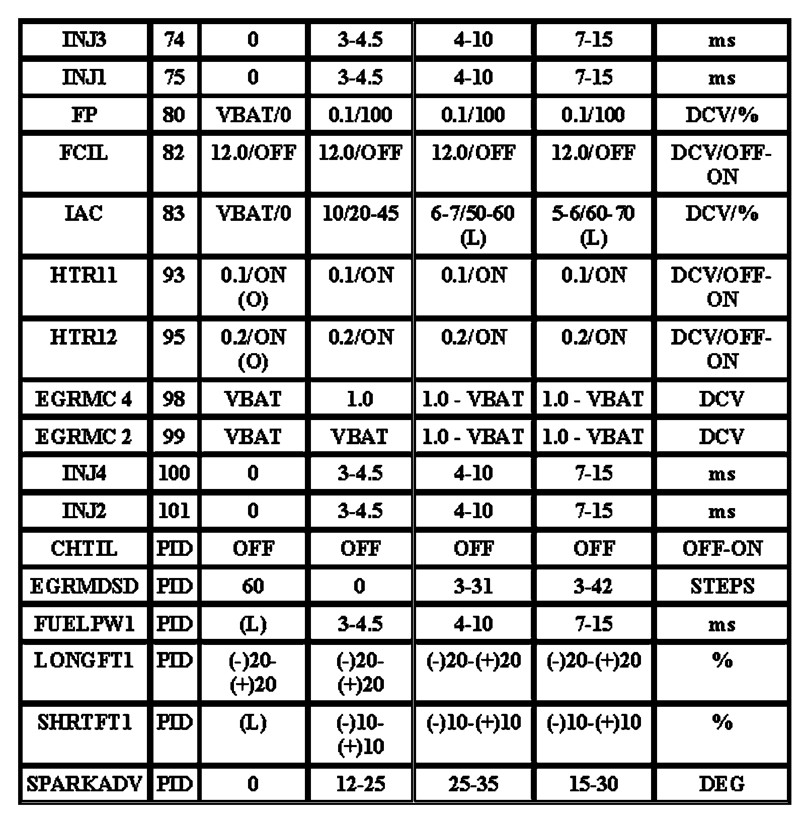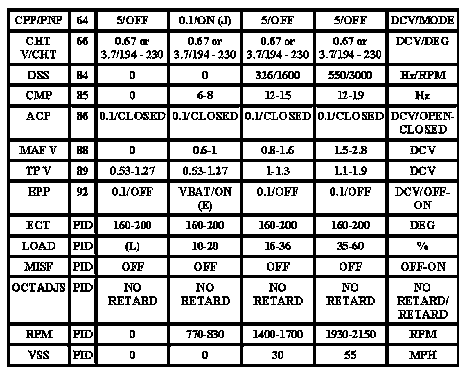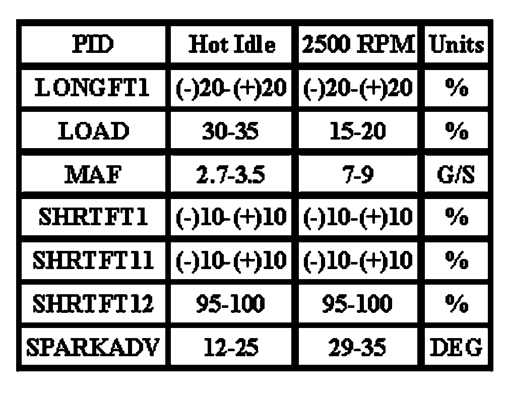 Note: All generic OBD readings under no loan (PARK or NEUTRAL).