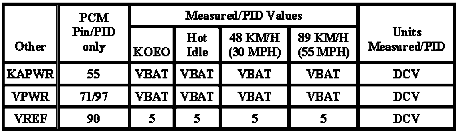 The Typical Diagnostic Reference Value Charts do not display fault PIDs. These are PIDs which indicate a hard fault with the circuit. They display a value of "YES" or "NO" and are PIDs ending with an "F".