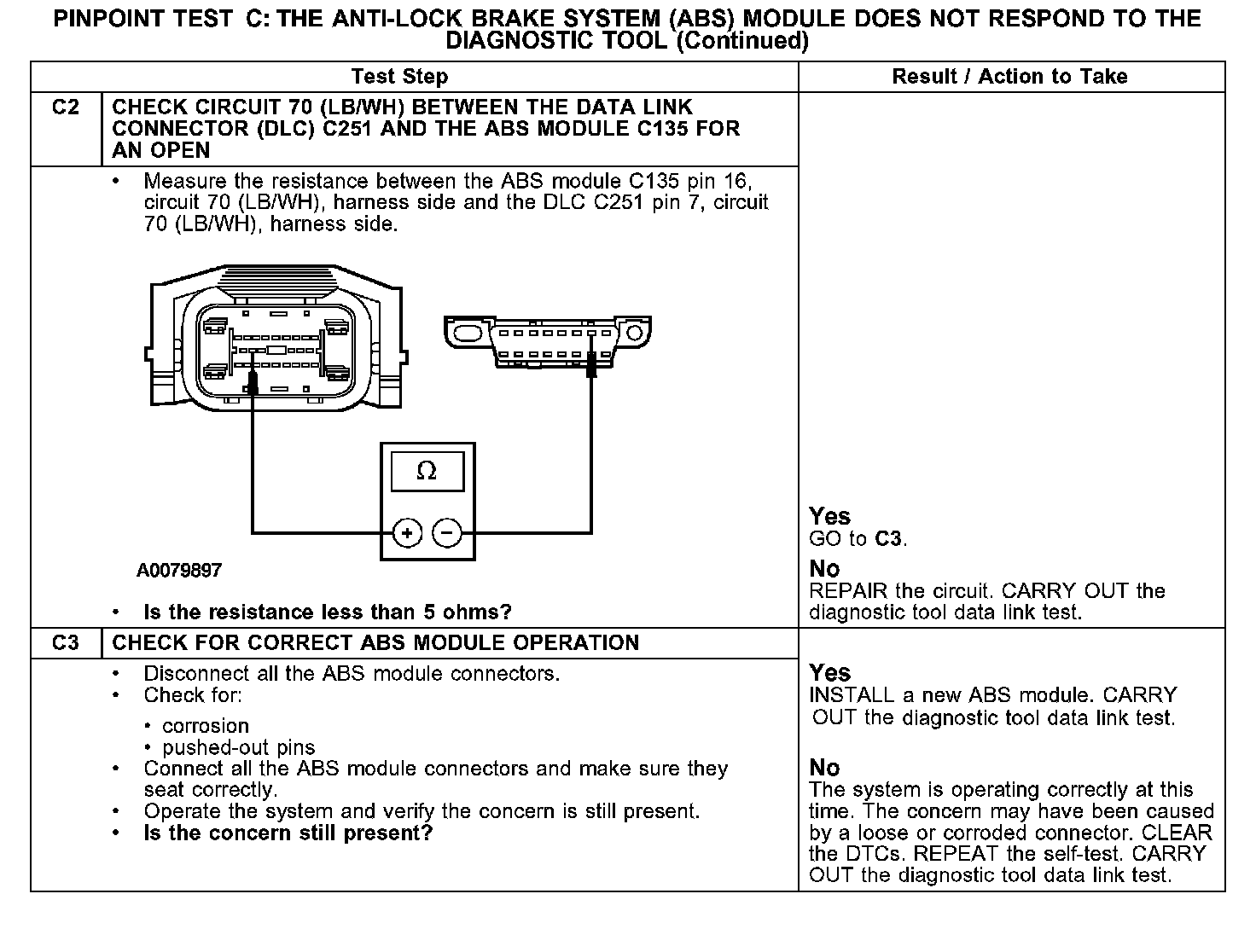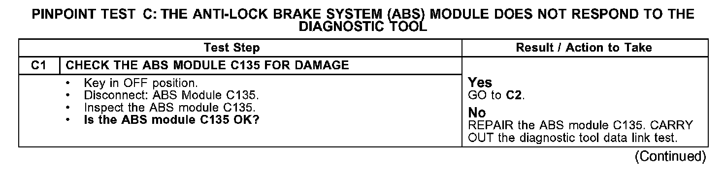 Test C: The Anti-Lock Brake System (ABS) Module Does Not Respond to the Diagnostic Tool