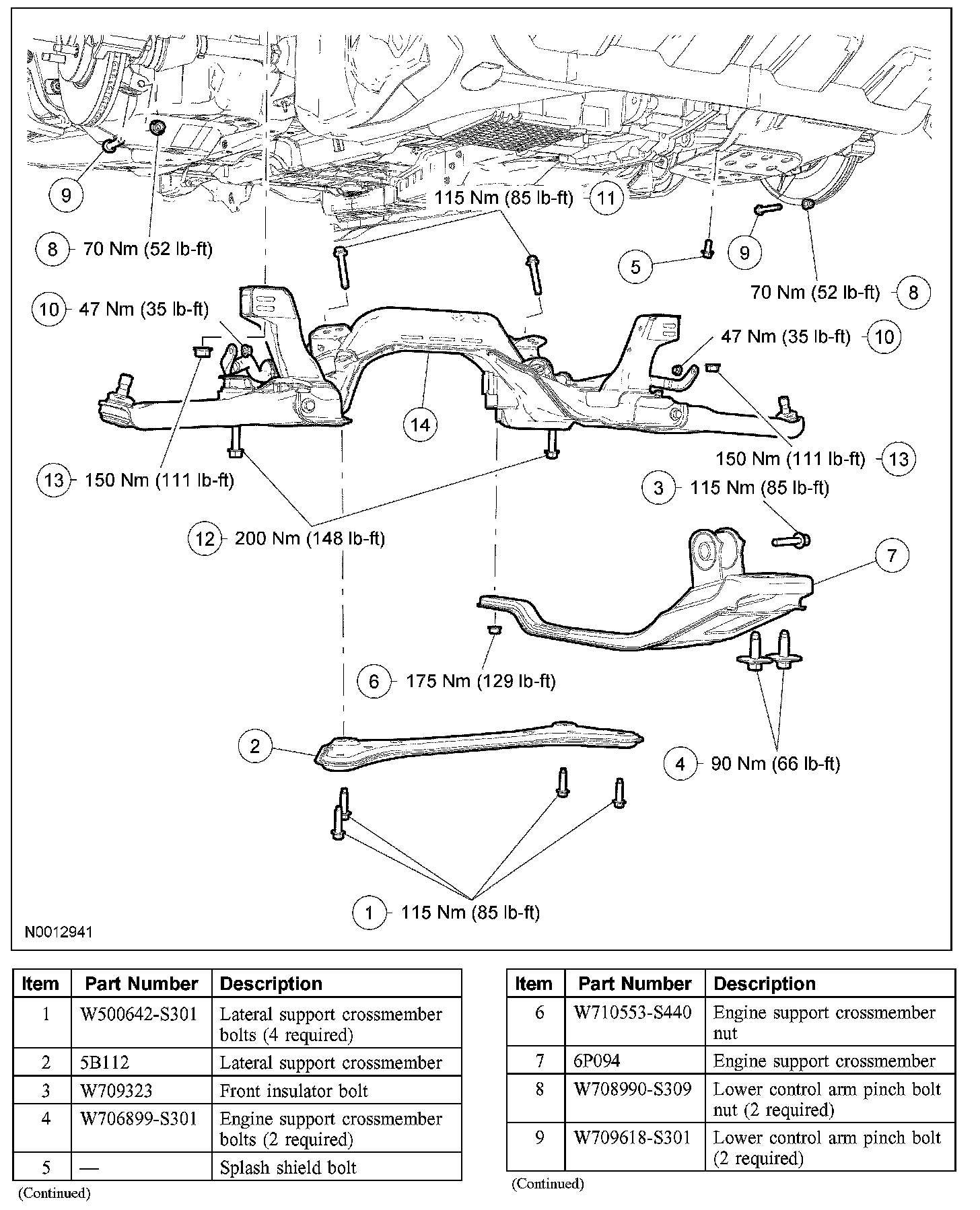 - When installing the front subframe rear bolts, make sure both of the front subframe rear bolts are fully engaged in their cage nuts before tightening to specification.