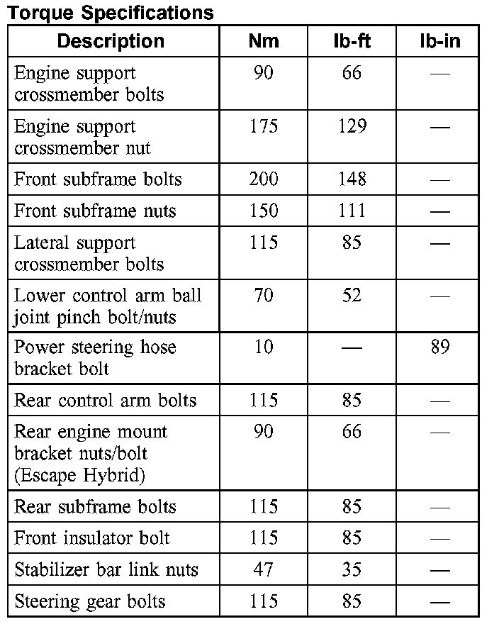 Torque Specifications: