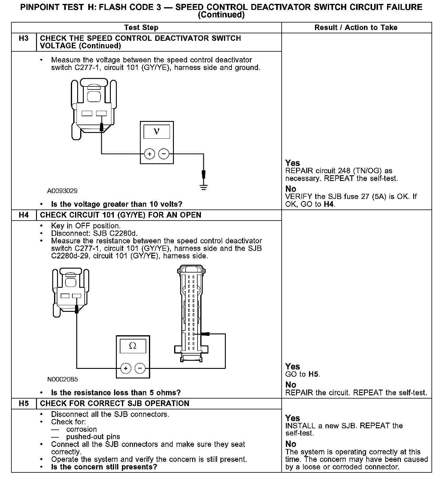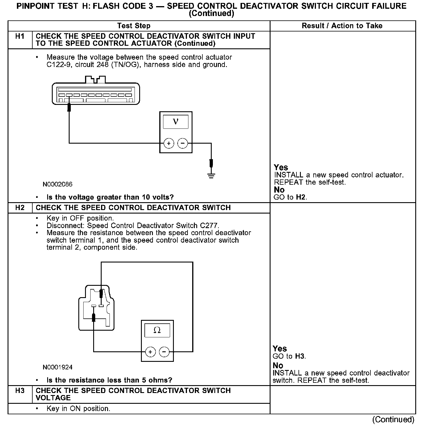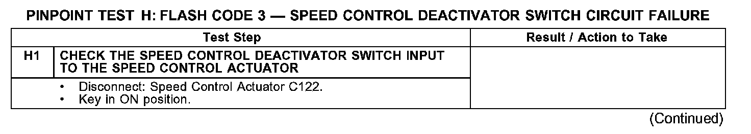 PINPOINT TEST H: FLASH CODE 3 - SPEED CONTROL DEACTIVATOR SWITCH CIRCUIT FAILUREH1: