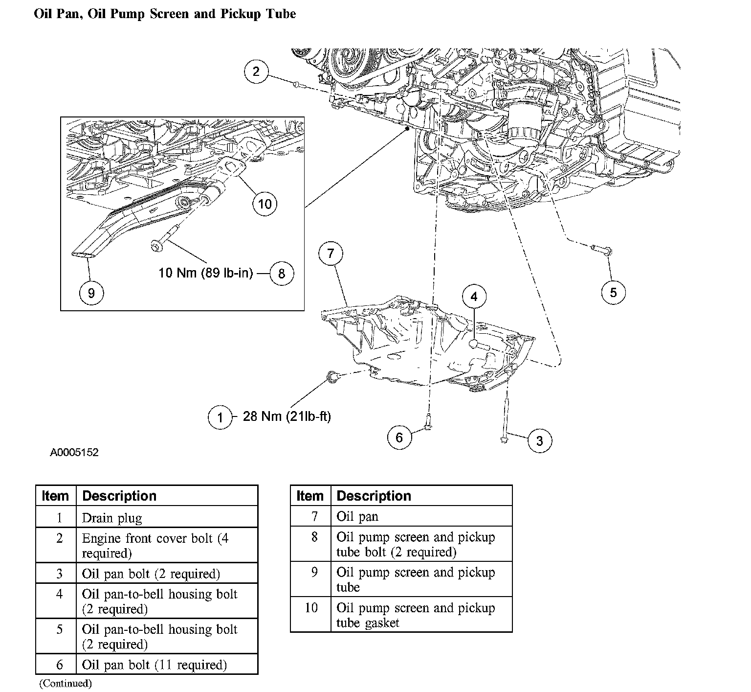 Oil Pan, Oil Pump Screen and Pickup Tube: