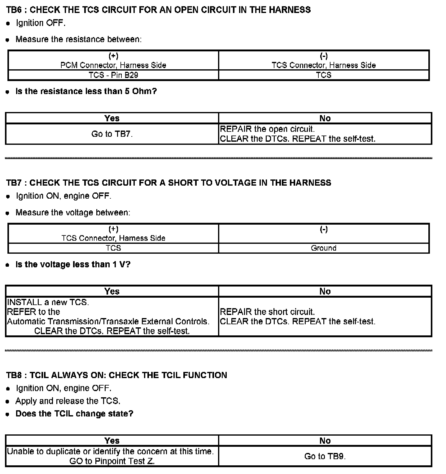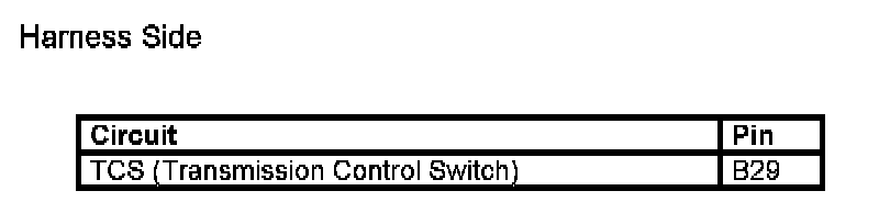 PINPOINT TEST TB: TRANSMISSION CONTROL SWITCH (TCS)/TRANSMISSION CONTROL INDICATOR LAMP (TCIL)