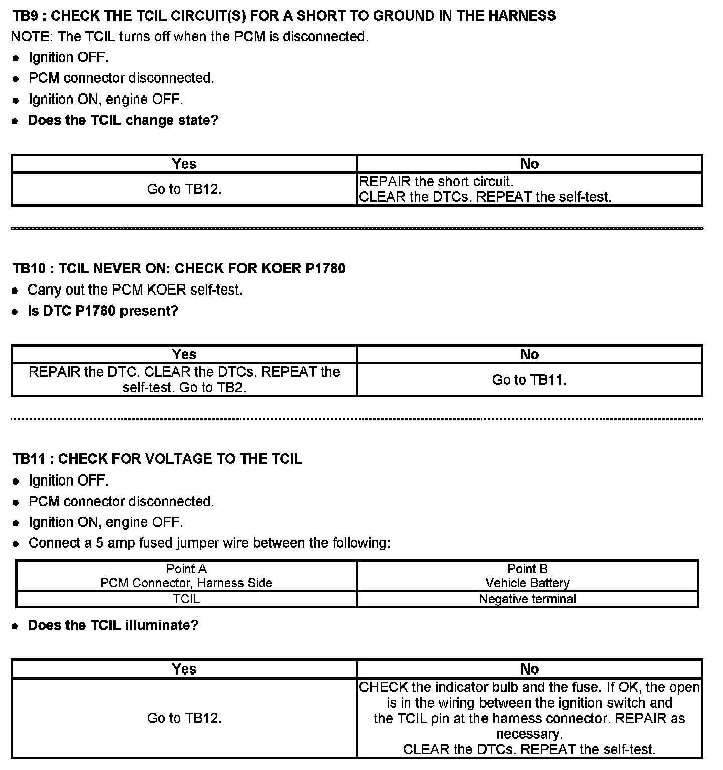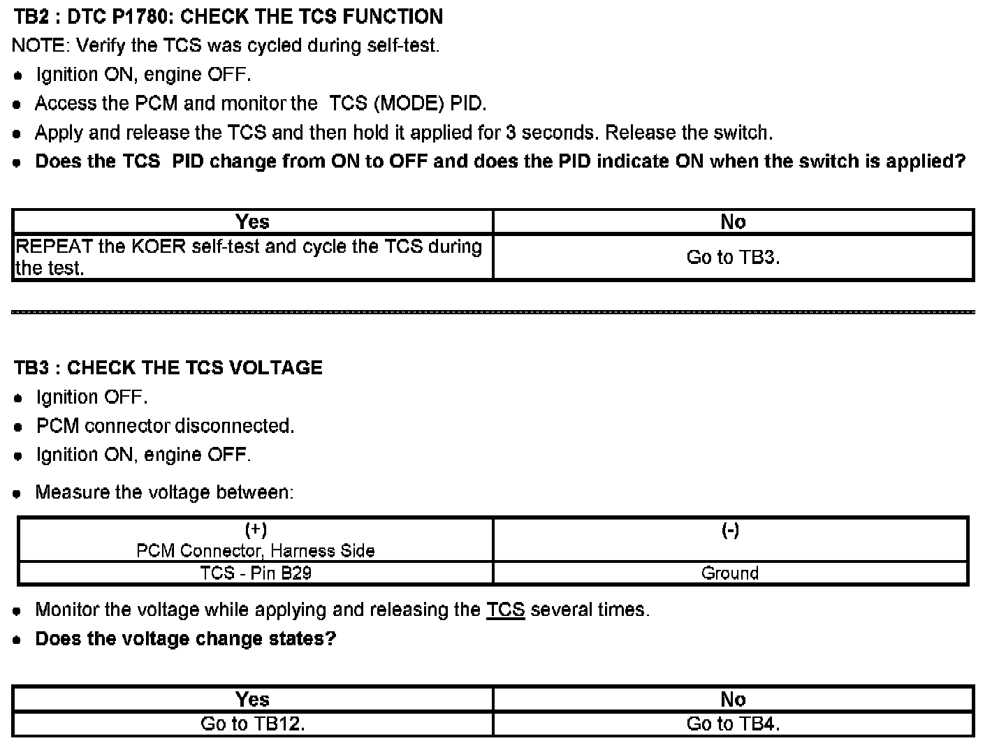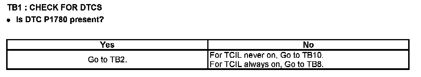 Tests TB: Transmission Control Switch (TCS)/Transmission Control Indicator Lamp (TCIL)