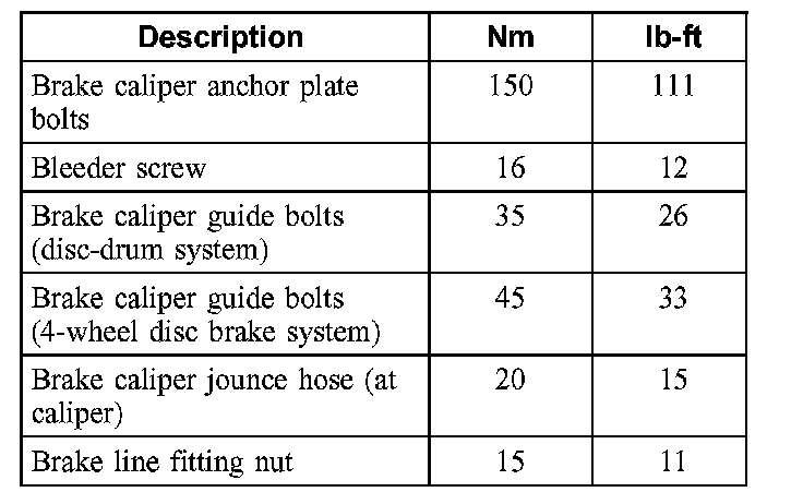 Torque Specifications, Front: