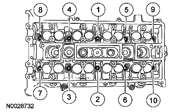 Cylinder head boltsStage 1: 5 Nm (44 inch lbs.)
