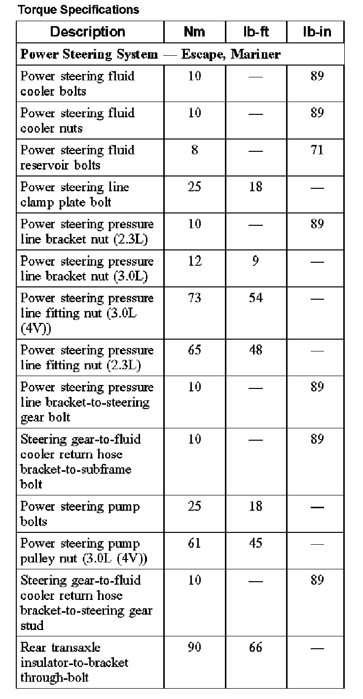 Torque Specifications (Part 1):