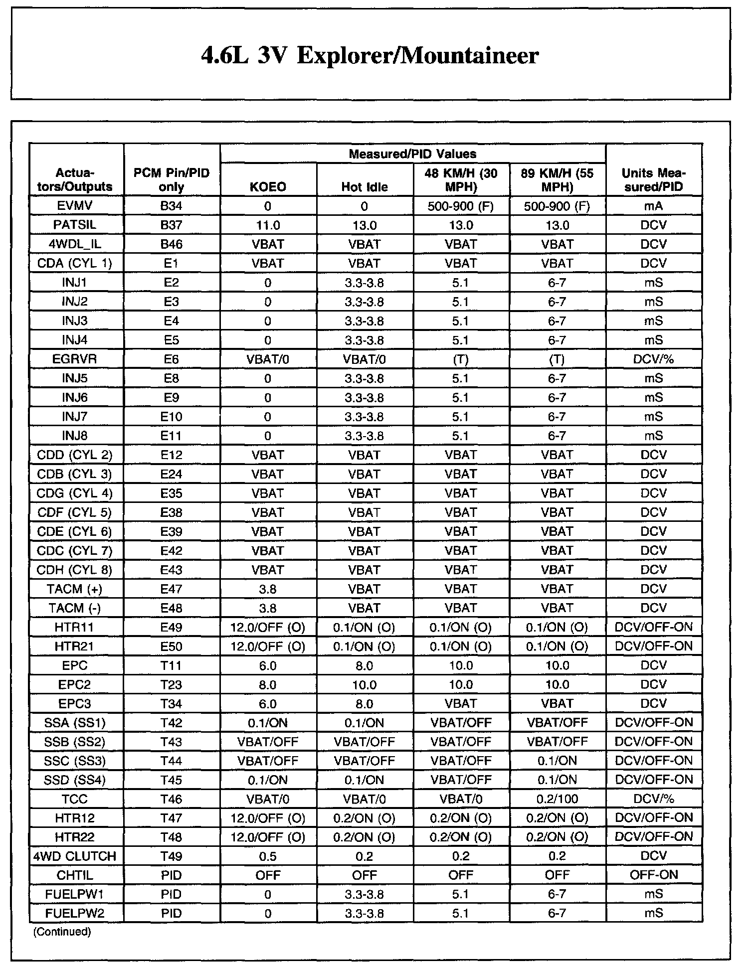 The Typical Diagnostic Reference Value Charts do not display fault parameter identifications (PIDs). These are PIDs which indicate a hard fault with the circuit. They display a value of YES or NO and are PIDs ending with the letter F.