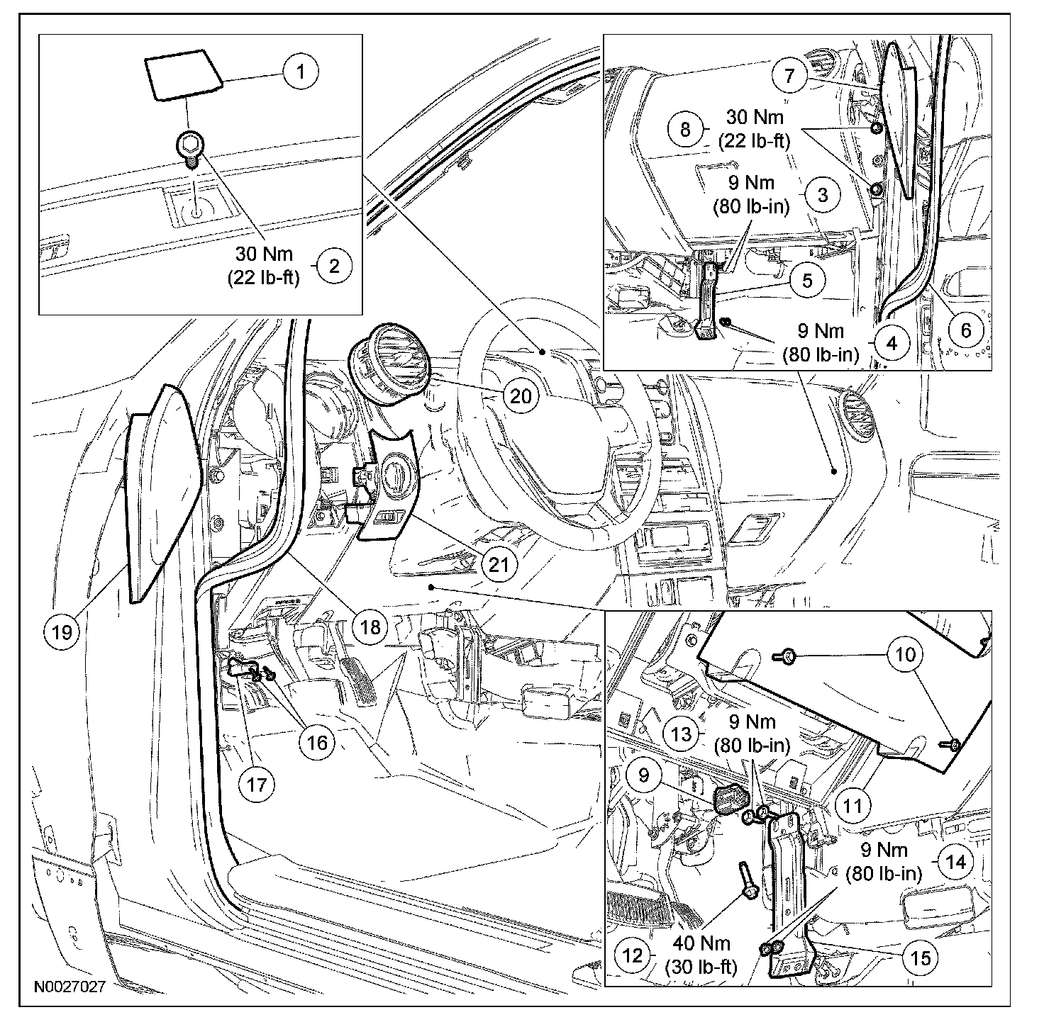 - Tighten to 9 Nm (80 lb-in).