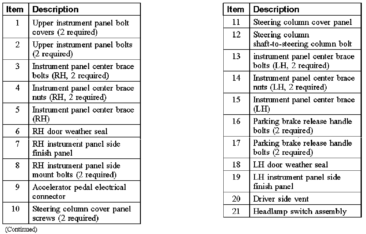 8. Loosen the RH instrument panel side mount bolts 13 mm (0.51 in).