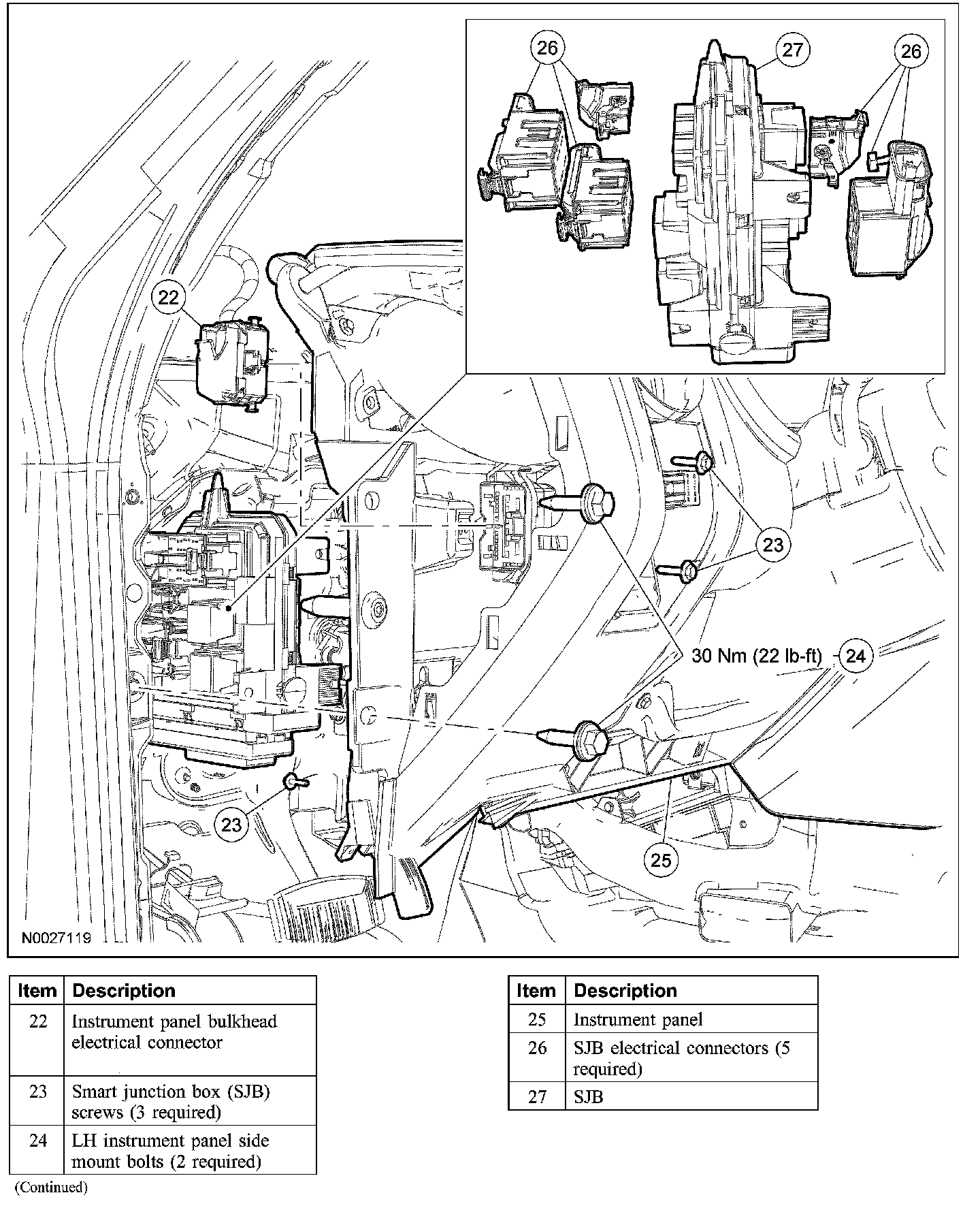 - Tighten to 30 Nm (22 lb-ft).