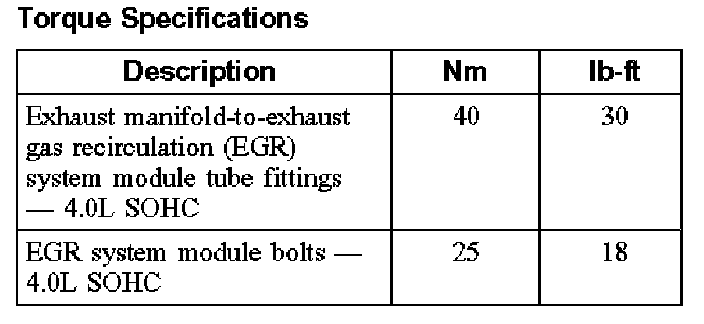 Torque Specifications: