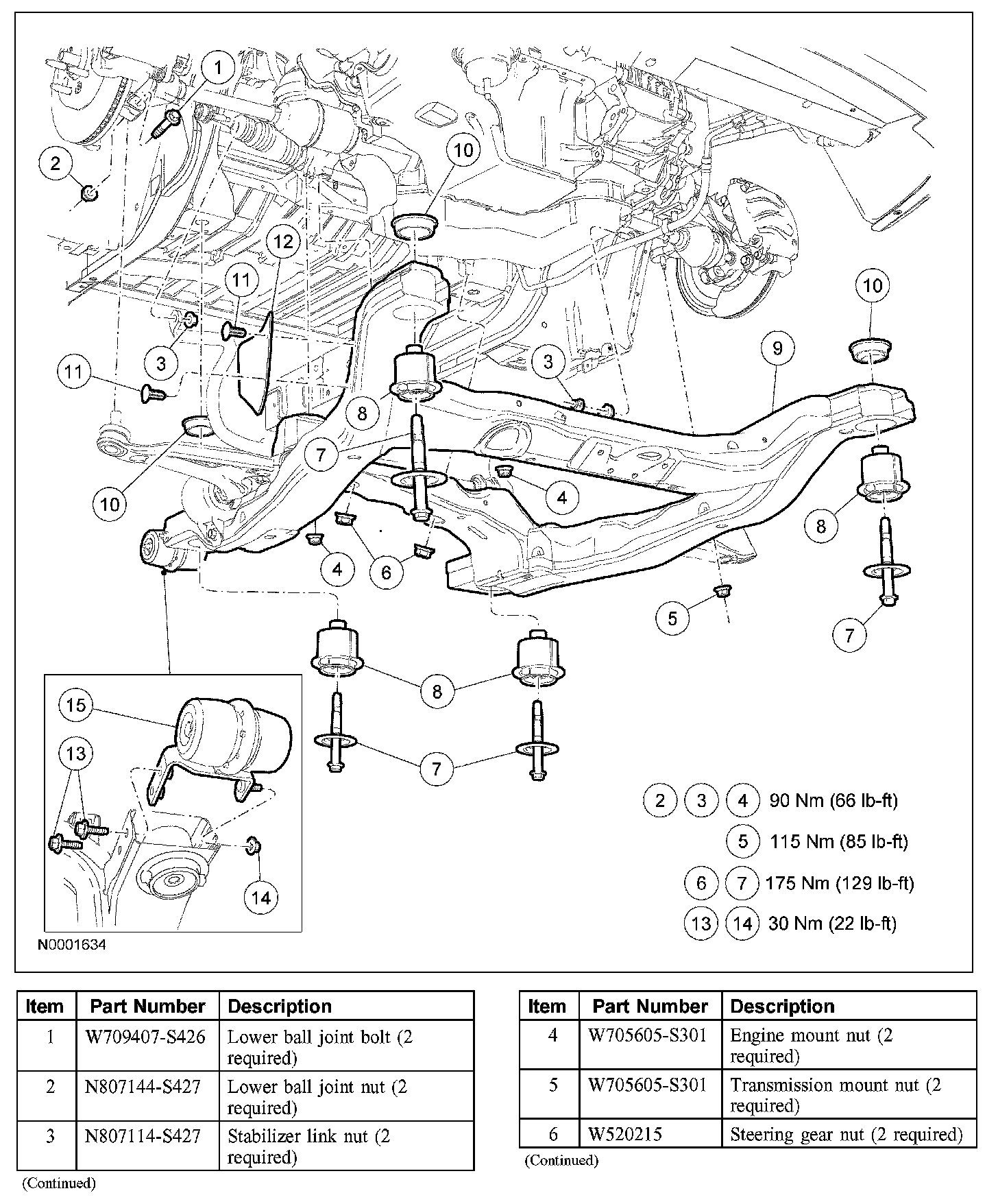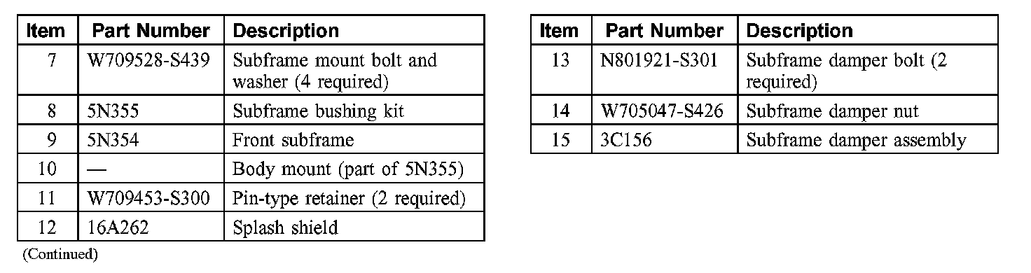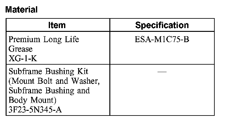 NOTE: The subframe bushing, body mount, bolt and washer are installed as a kit.