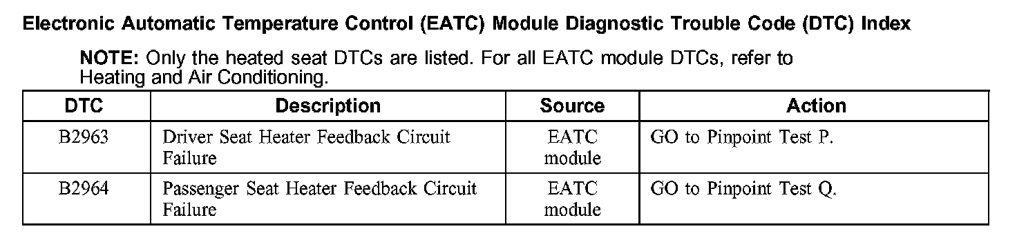 Electronic Automatic Temperature Control (EATC) Module Diagnostic Trouble Code (DTC) Index
