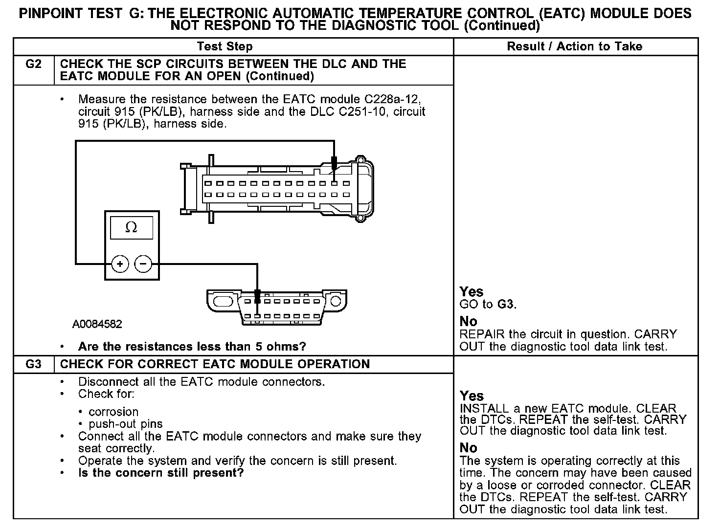Test G: The Electronic Automatic Temperature Control (EATC) Module Does Not Respond to the Diagnostic Tool