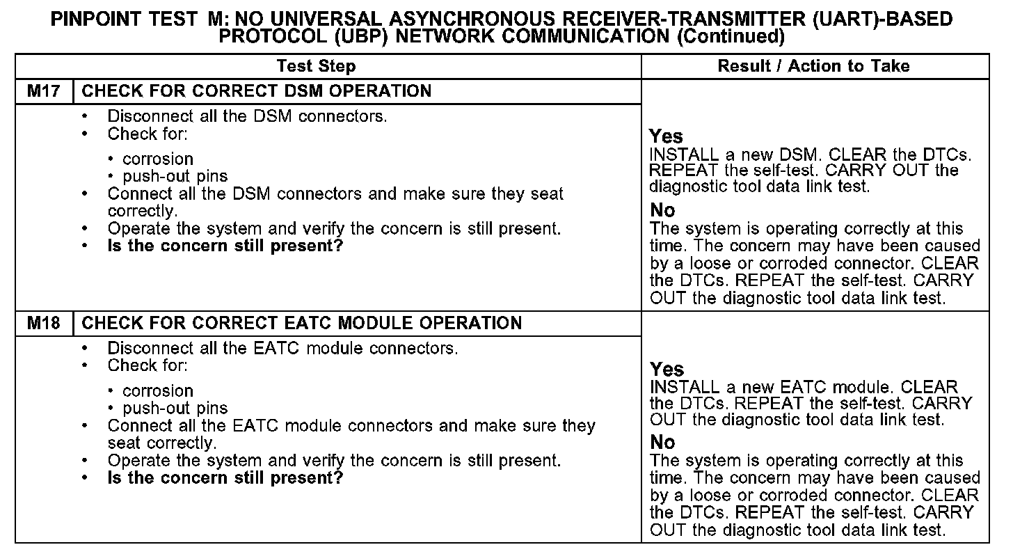 PINPOINT TEST M: NO UNIVERSAL ASYNCHRONOUS RECEIVER-TRANSMITTER (UART)-BASED PROTOCOL (UBP) NETWORK COMMUNICATIONM1-M2: