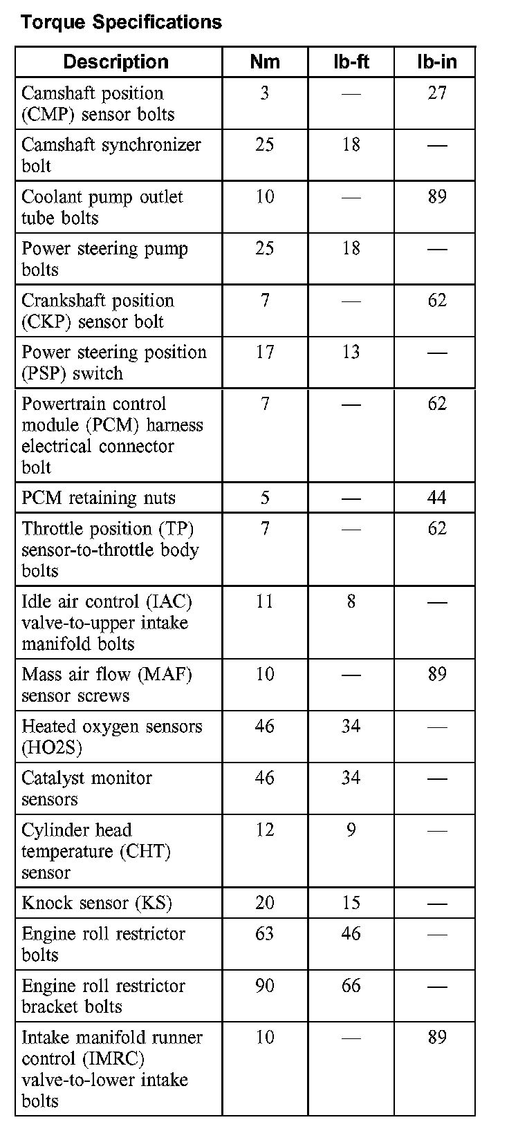 Torque Specifications: