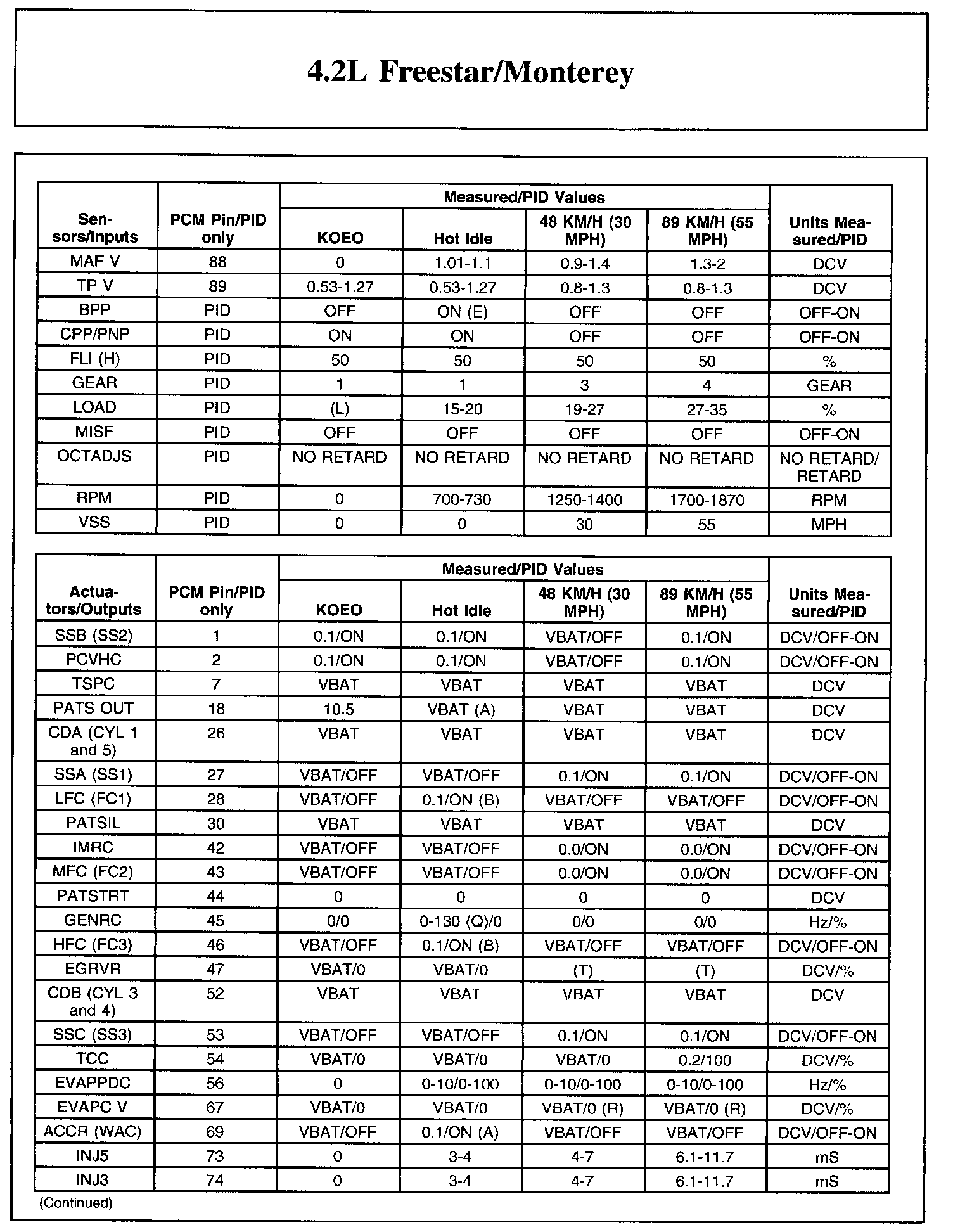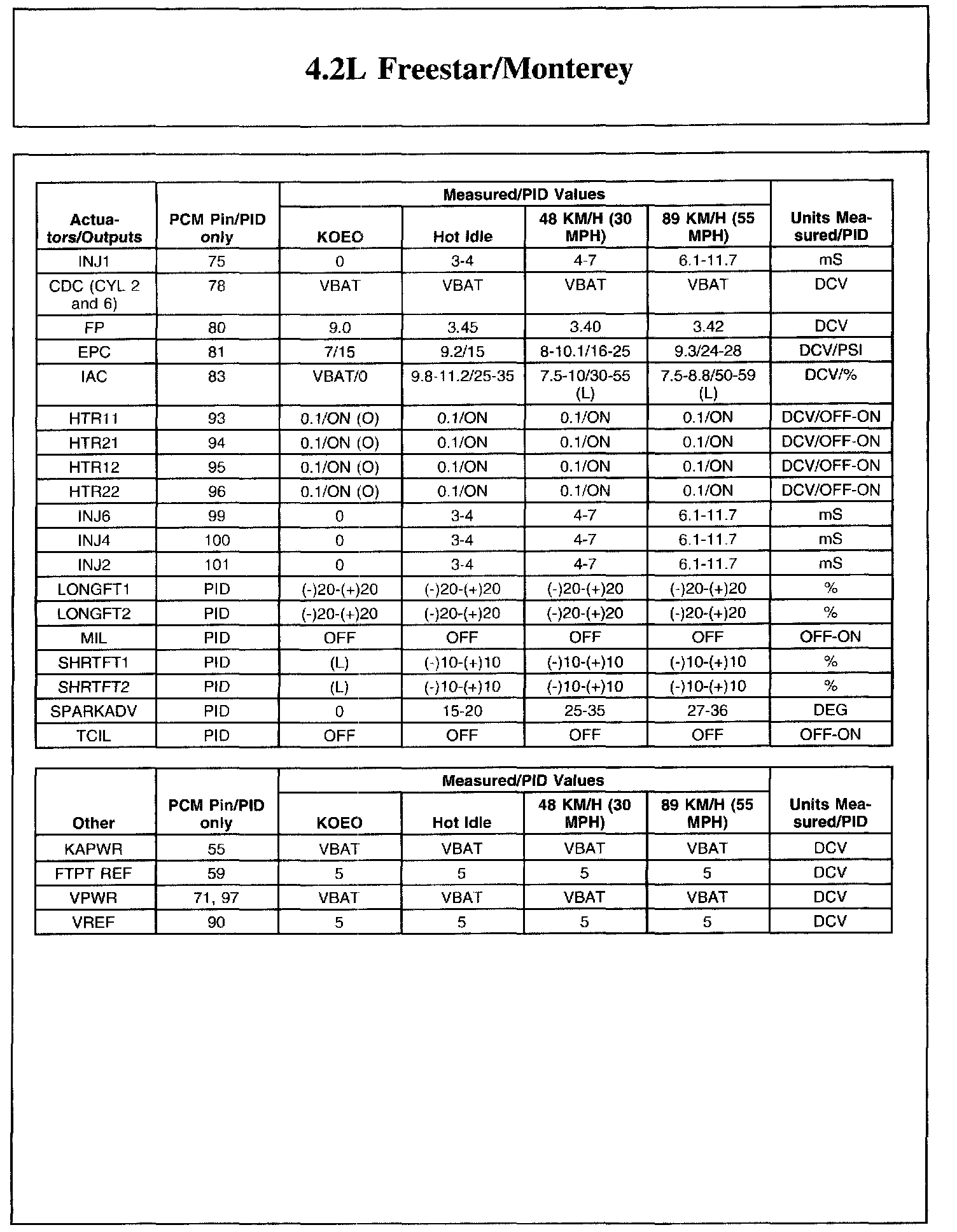The Typical Diagnostic Reference Value Charts do not display fault parameter identifications (PIDs). These are PIDs which indicate a hard fault with the circuit. They display a value of YES or NO and are PIDs ending with the letter F.
