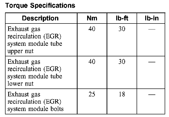 Torque Specifications: