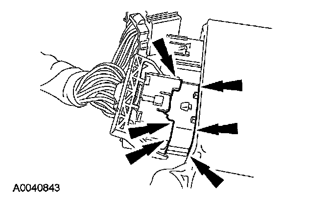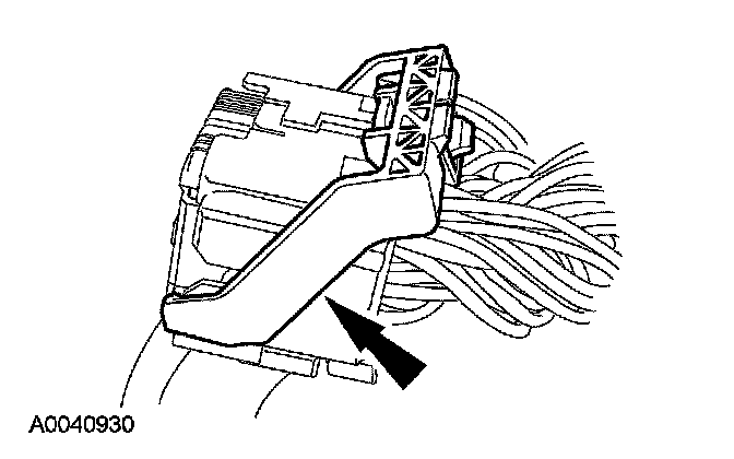 - When installing a new restraints control module (RCM), always make sure the correct RCM is being installed. The RCM 40-pin connector is keyed differently for vehicles with safety canopies and side air bags than the 40-pin connector for vehicles without safety canopies and side air bags. Do not force the 40-pin connector onto the RCM. If the connector is forced onto the RCM, damage to the RCM and/or connector will occur.