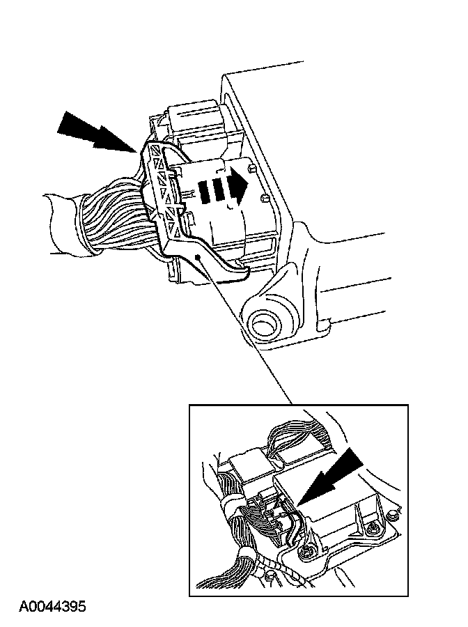 4. Disconnect the large restraints control module (RCM) electrical connector.