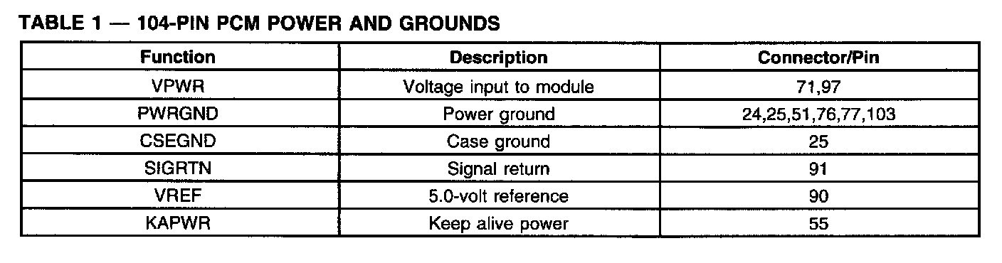 104-PIN PCM Power And Grounds: