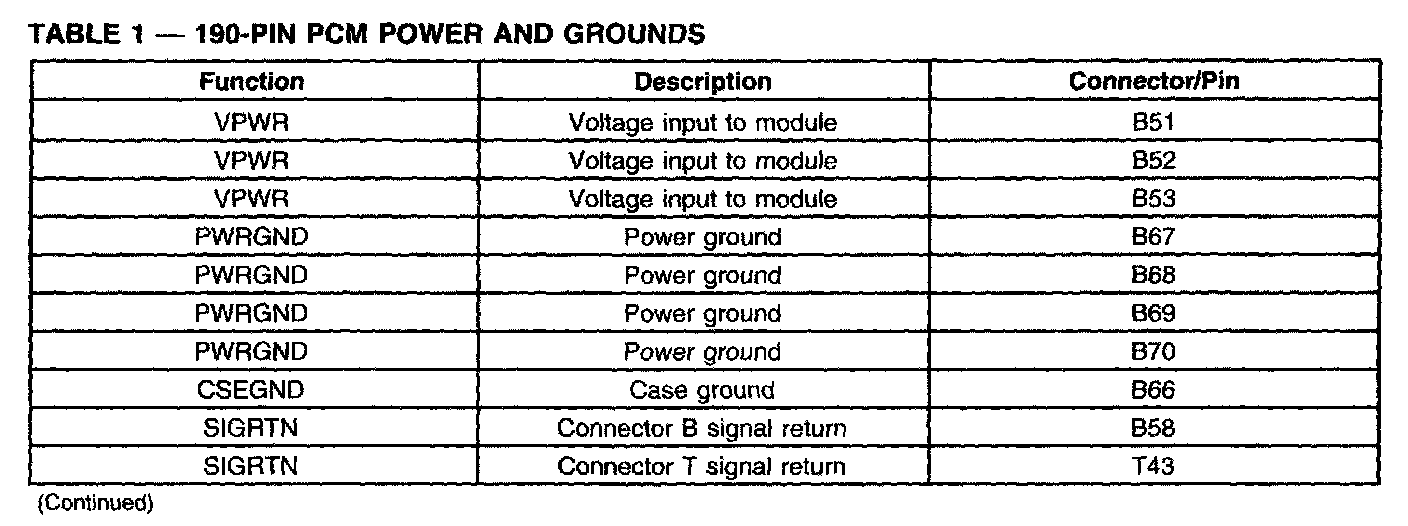 190-PIN PCM Power And Grounds (Part 1):