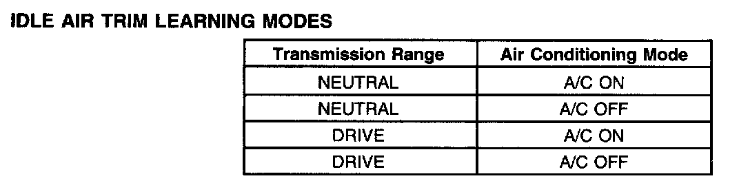 Idle Air Trim Learning Modes: