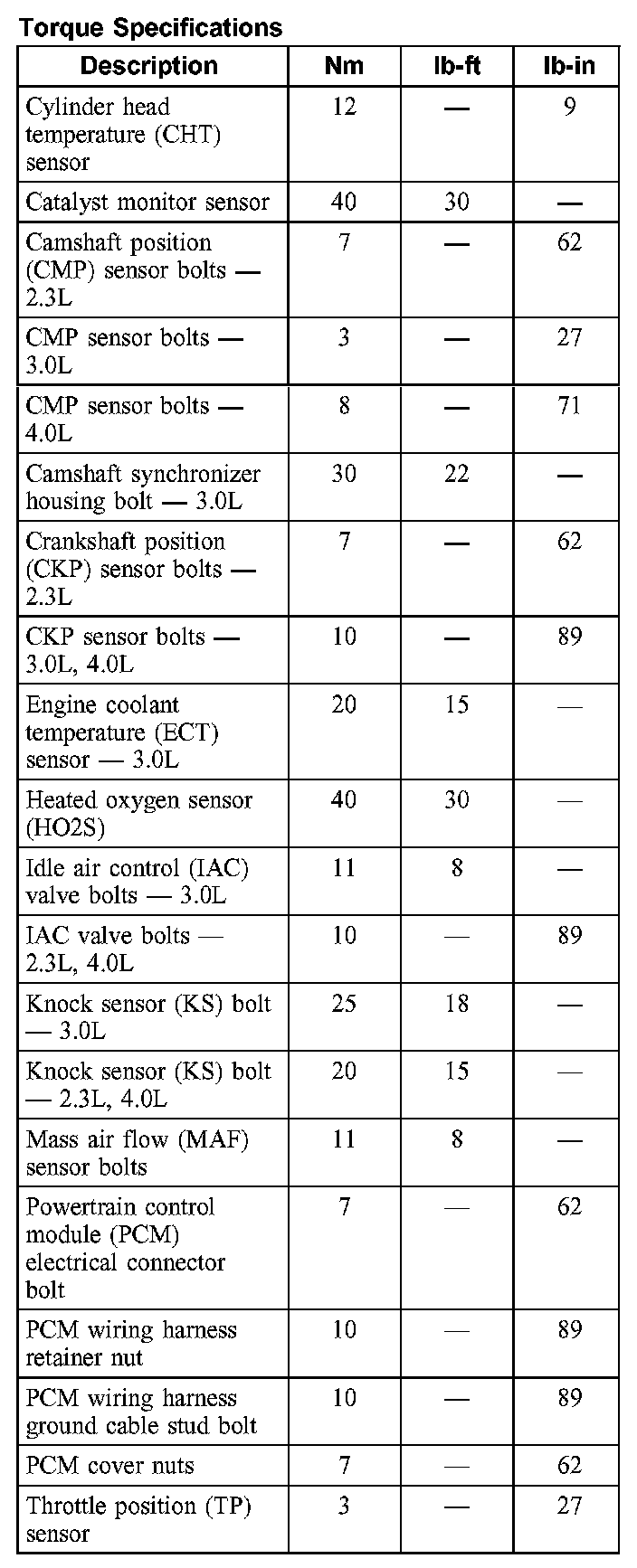 Torque Specifications: