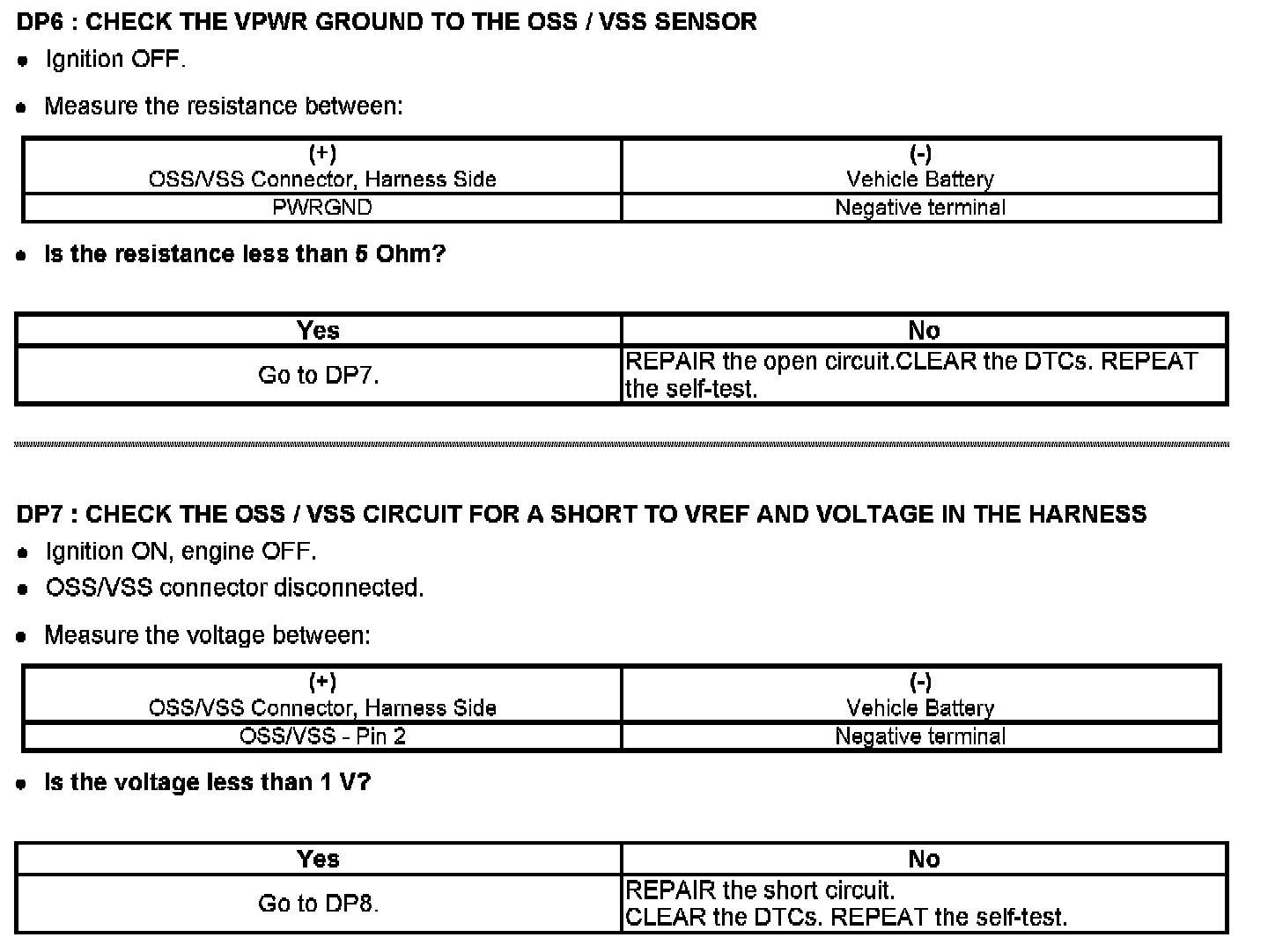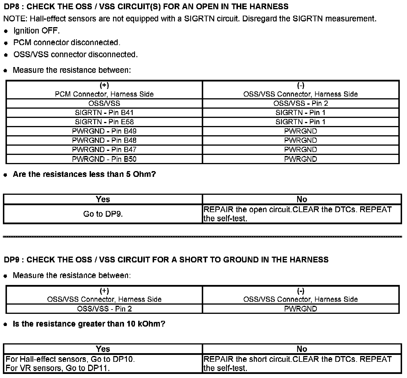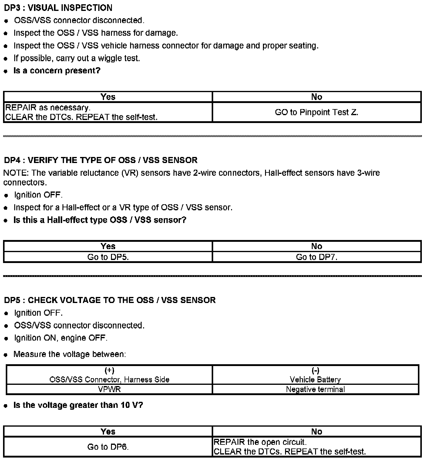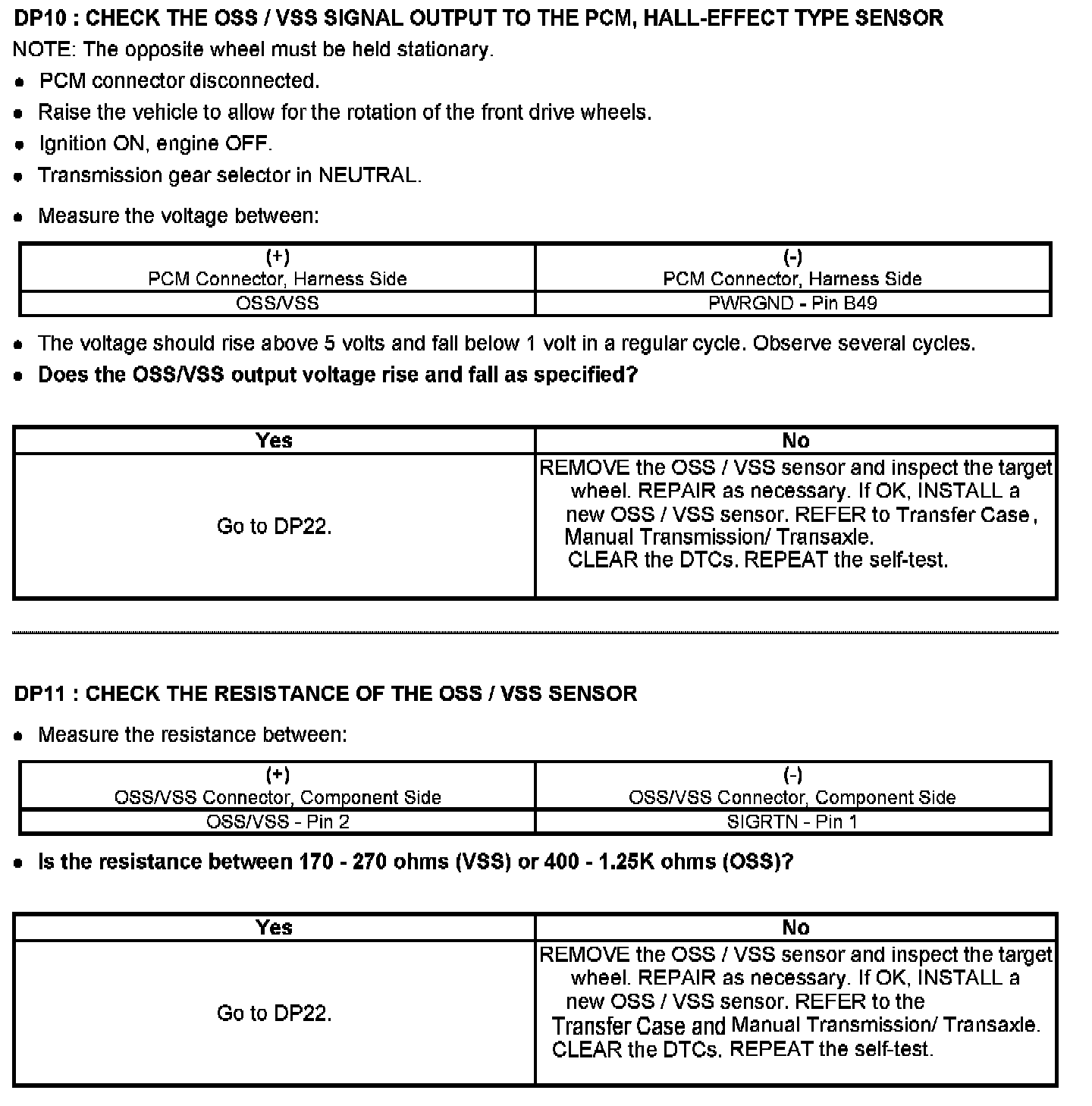 Tests DP: Output Shaft Speed (OSS) Sensor/Vehicle Speed Sensor (VSS)/Transfer Case Speed Sensor (TCSS)