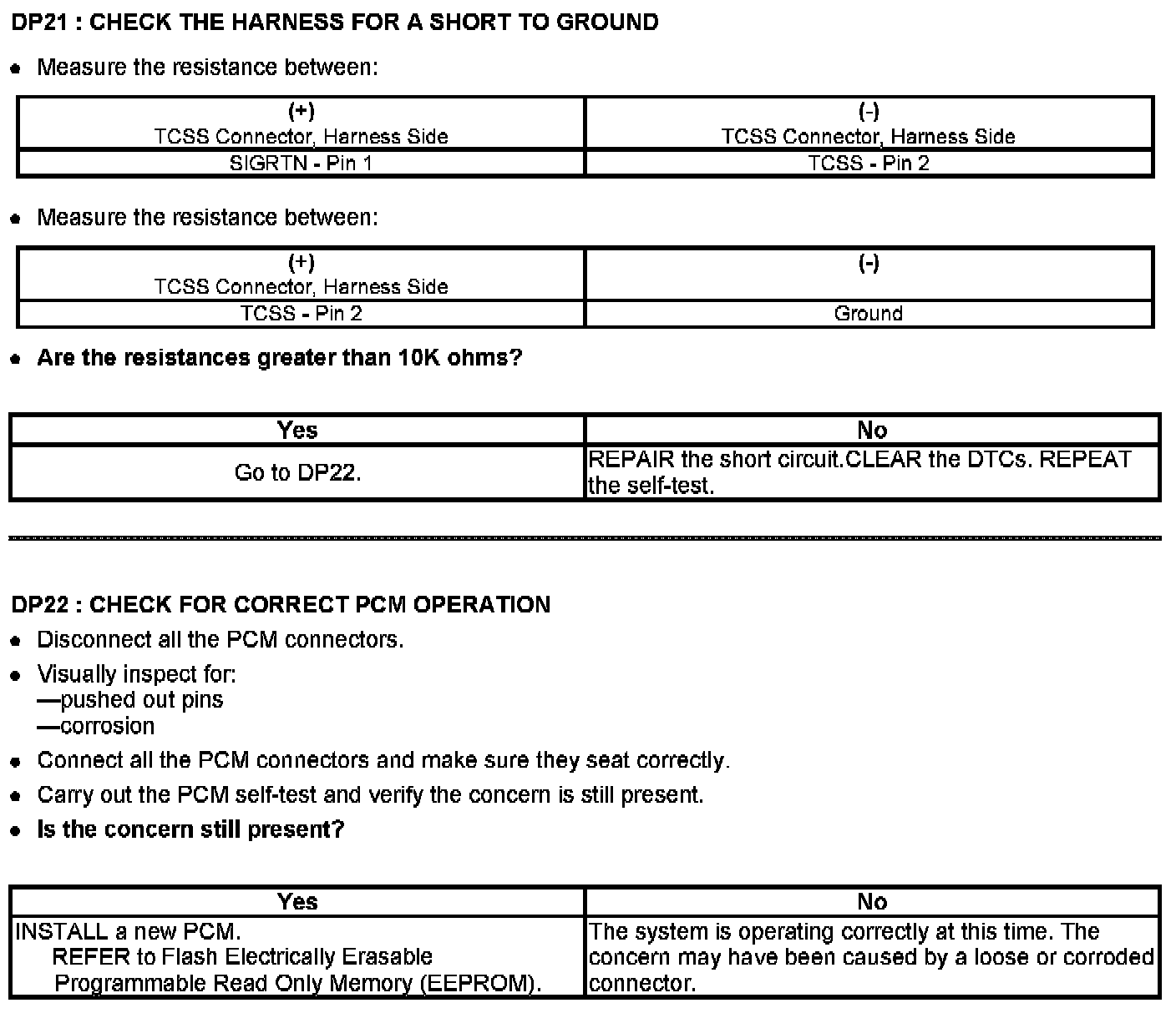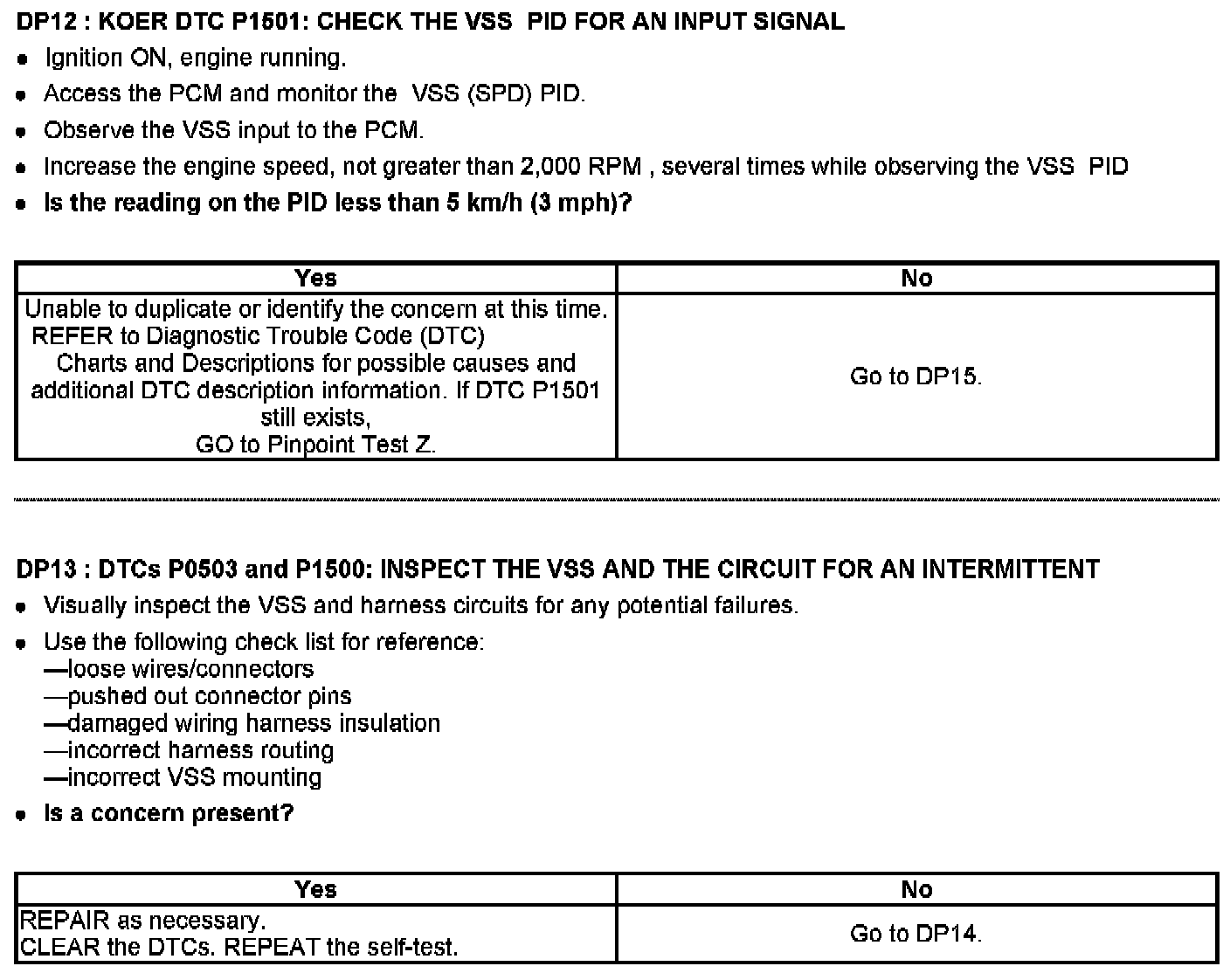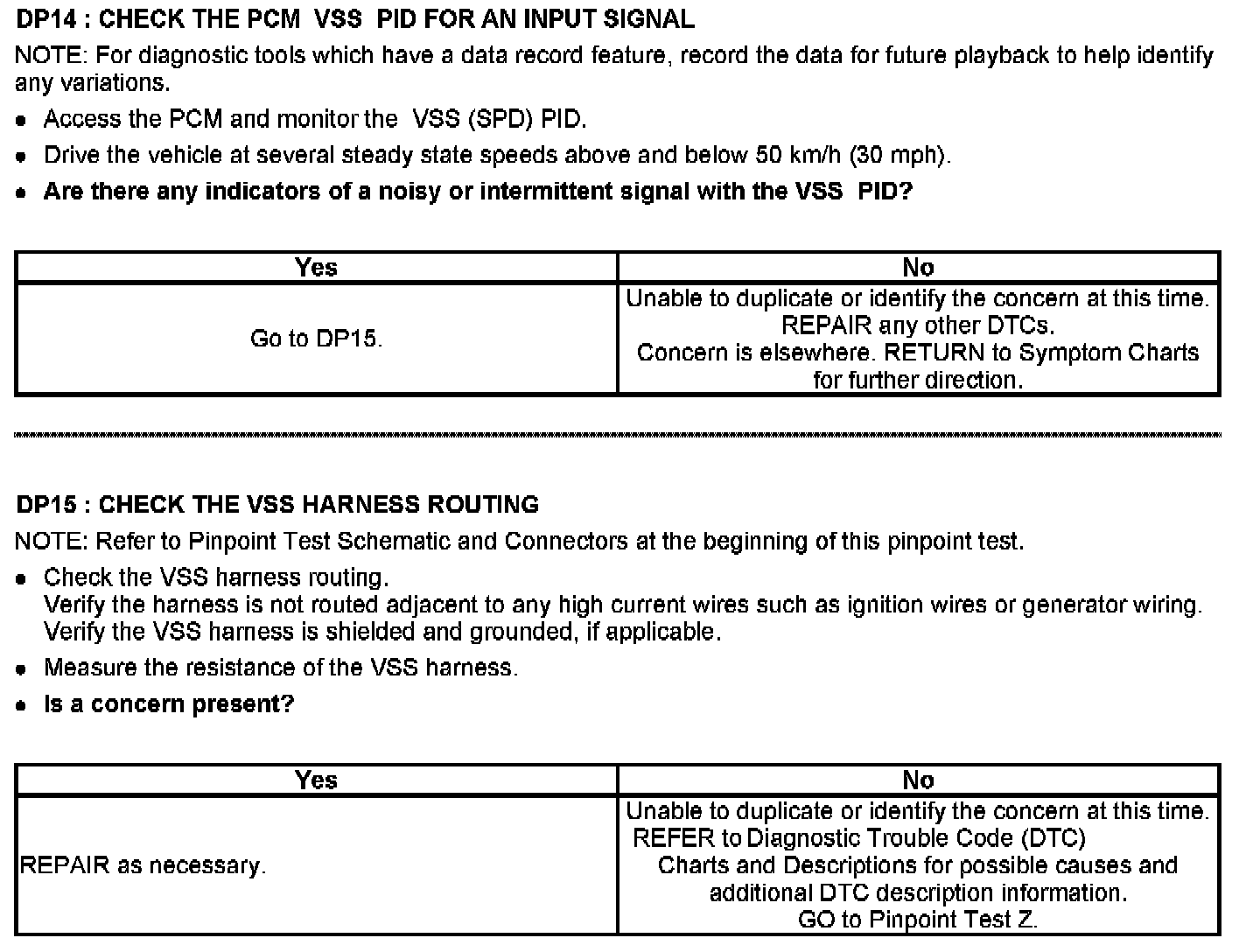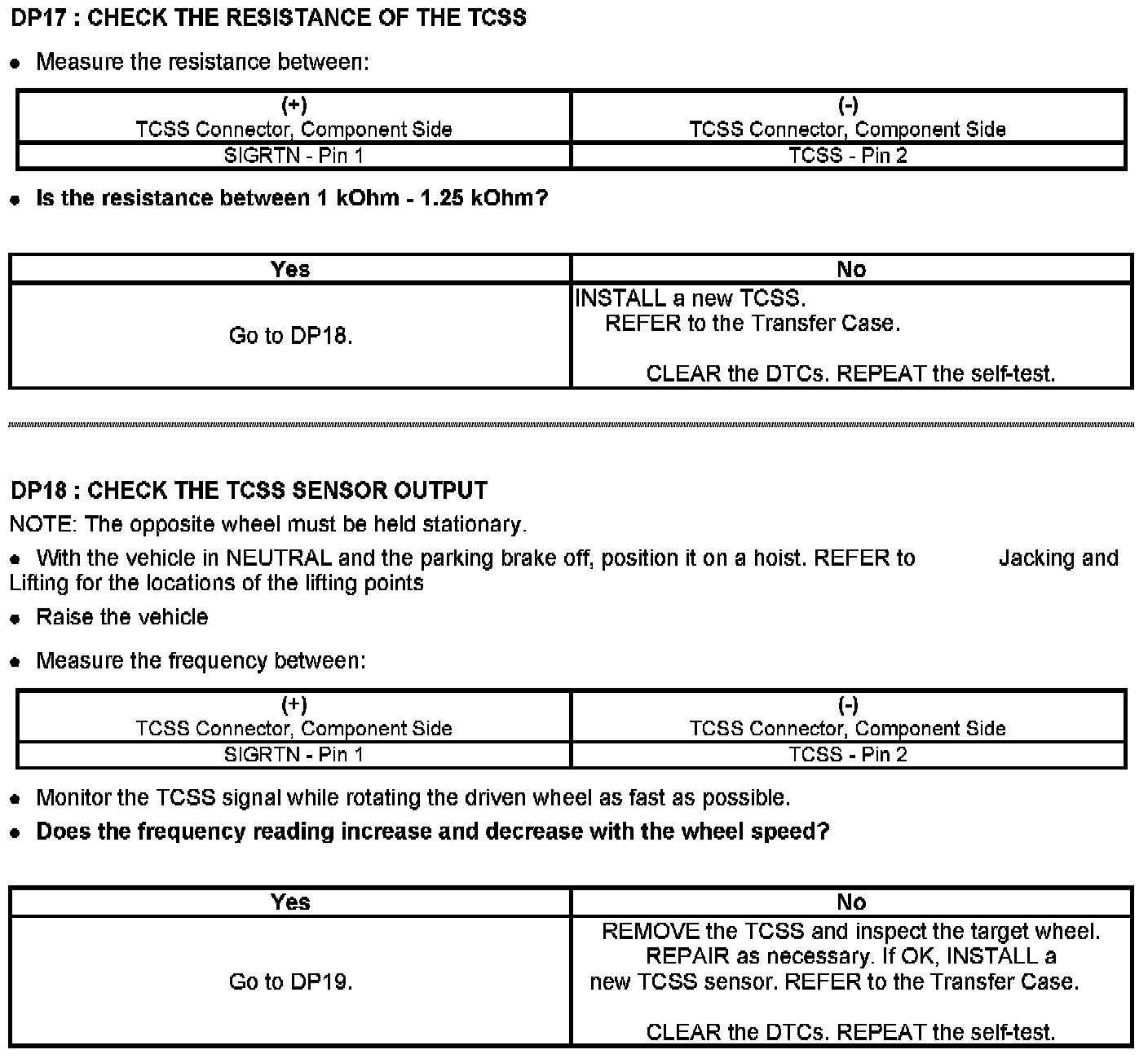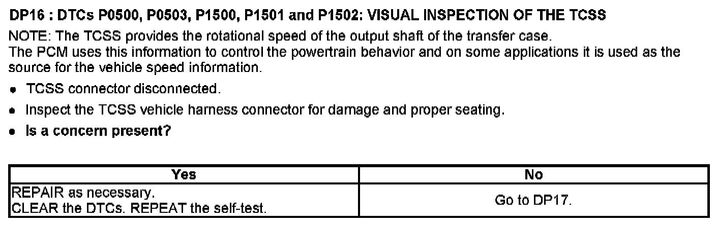 Tests DP: Output Shaft Speed (OSS) Sensor/Vehicle Speed Sensor (VSS)/Transfer Case Speed Sensor (TCSS)