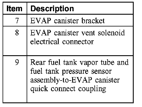 Disconnect the rear fuel tank vapor tube and fuel tank pressure sensor assembly-to-evaporative emissions (EVAP) canister quick connect coupling.