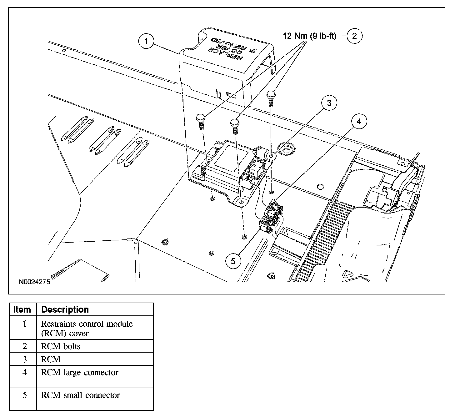 1. WARNING: The tightening torque of the air bag RCM bracket retaining bolts is critical for correct system operation.