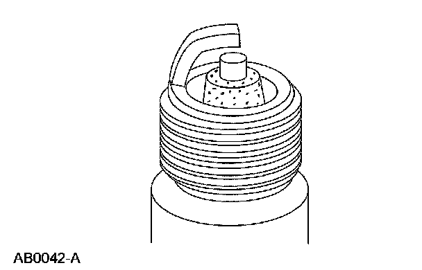 ^ Check for wet, black deposits on the insulator shell bore electrodes, caused by excessive oil entering the combustion chamber through worn rings and pistons, excessive valve-to-guide clearance or worn or loose bearings.