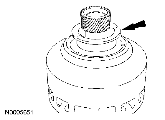 1. Clean and inspect the forward/reverse sun gear and input shell assembly. Check the sun gear teeth, lug teeth and thrust surface for damage. If any evidence of damage is found, a new input shell assembly must be installed.