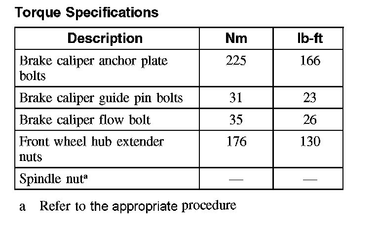 Torque Specifications, Front