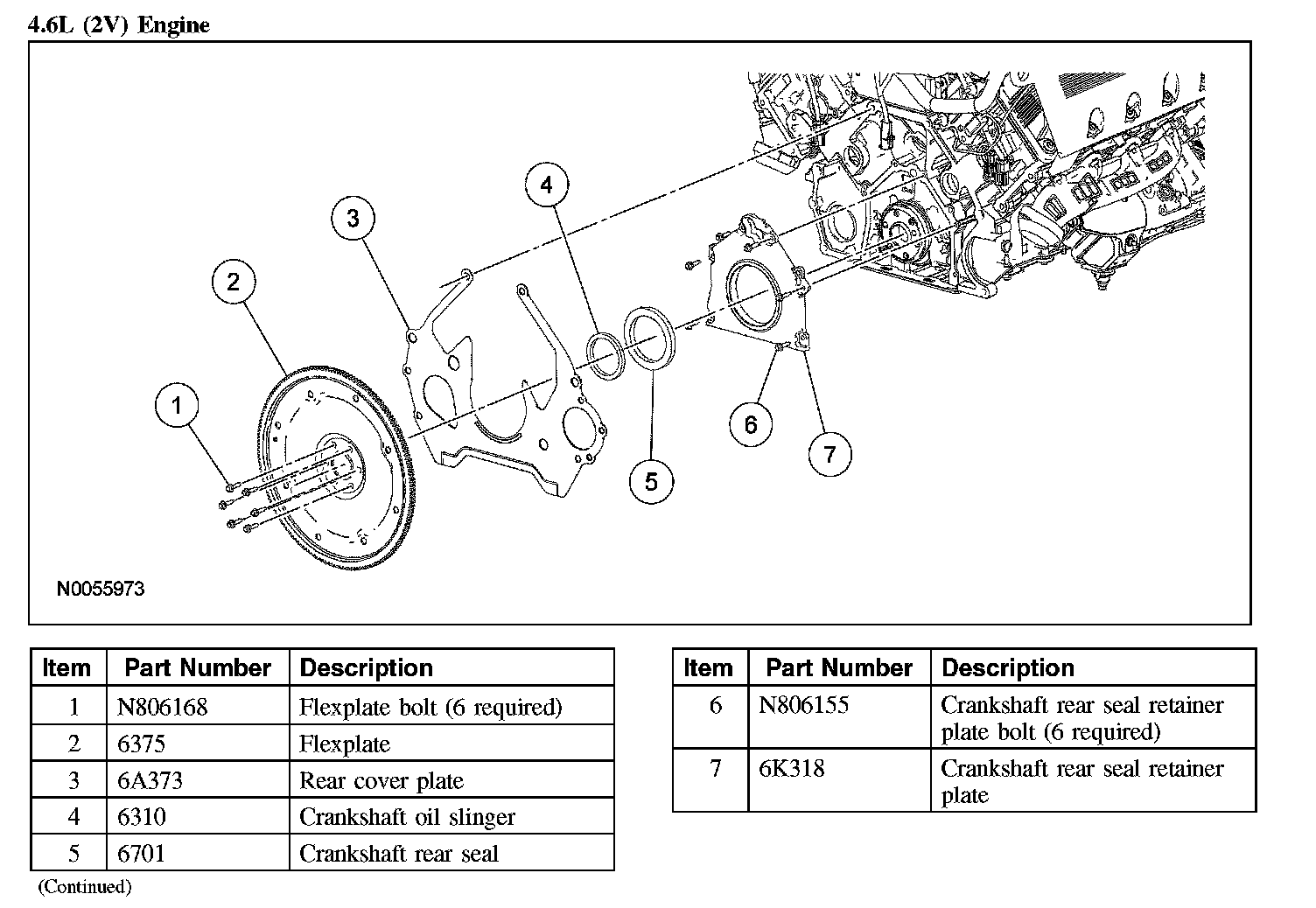 Flexplate or Flywheel and Crankshaft Rear Seal - Exploded View