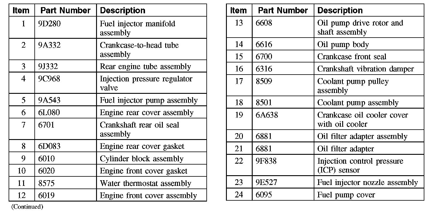Front Cover, Rear Cover and Oil Components (Part 1):