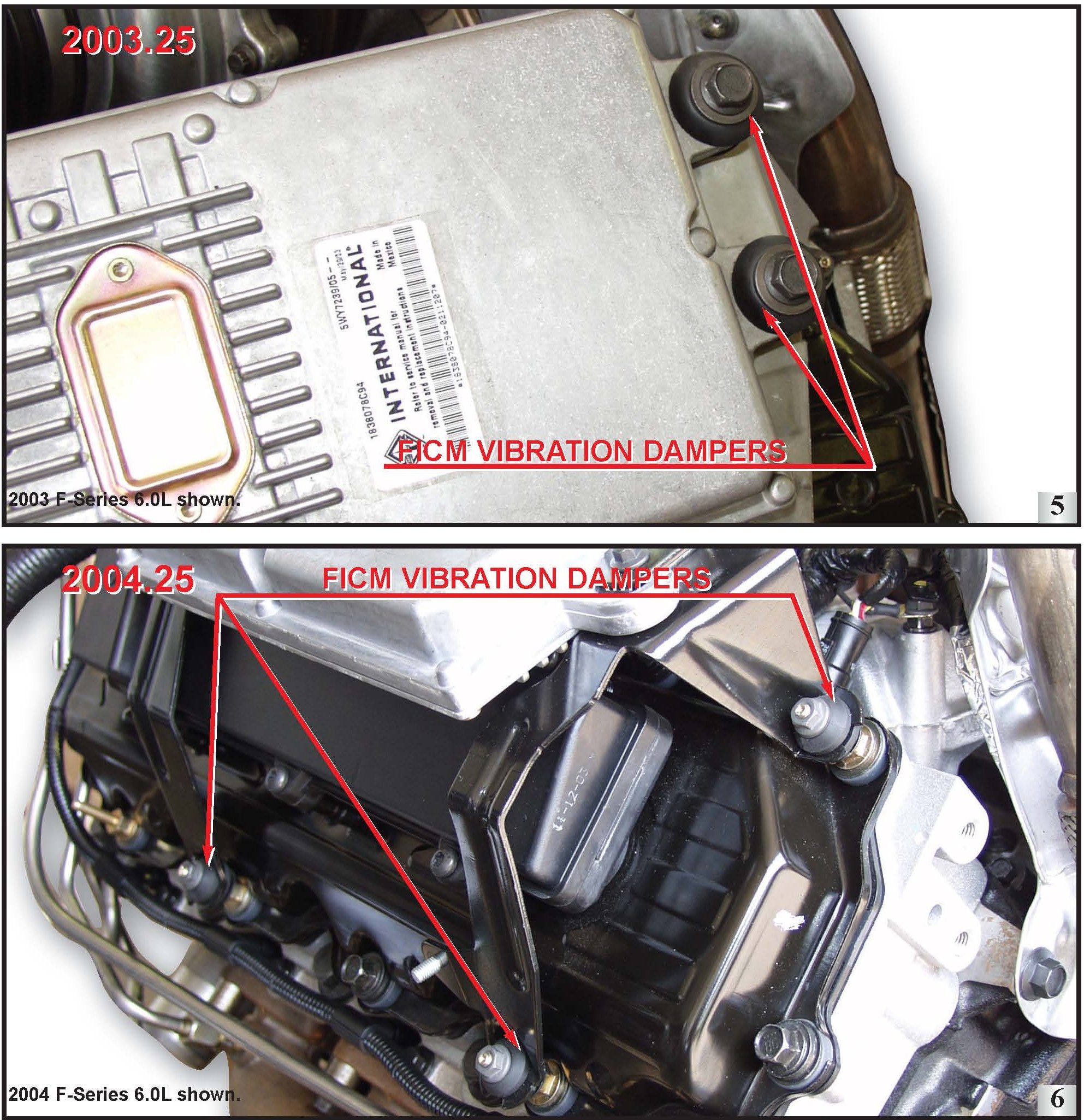 On 2OO3.25 6.0L engines the dampers were mounted directly to the FICM