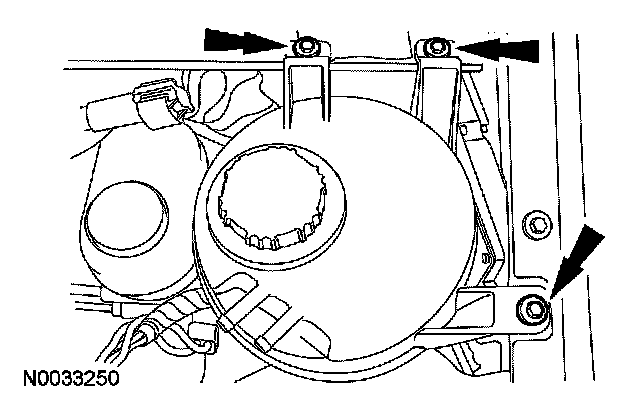 3. Remove the 3 bolts and position the degas bottle aside. To install, tighten to 10 Nm (89 lb-in).