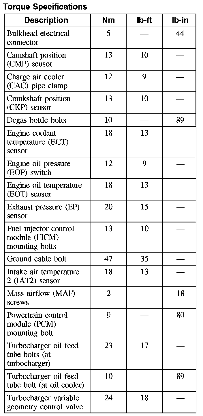 Torque Specifications: