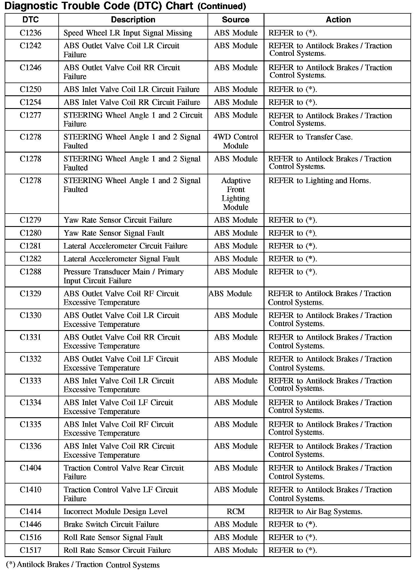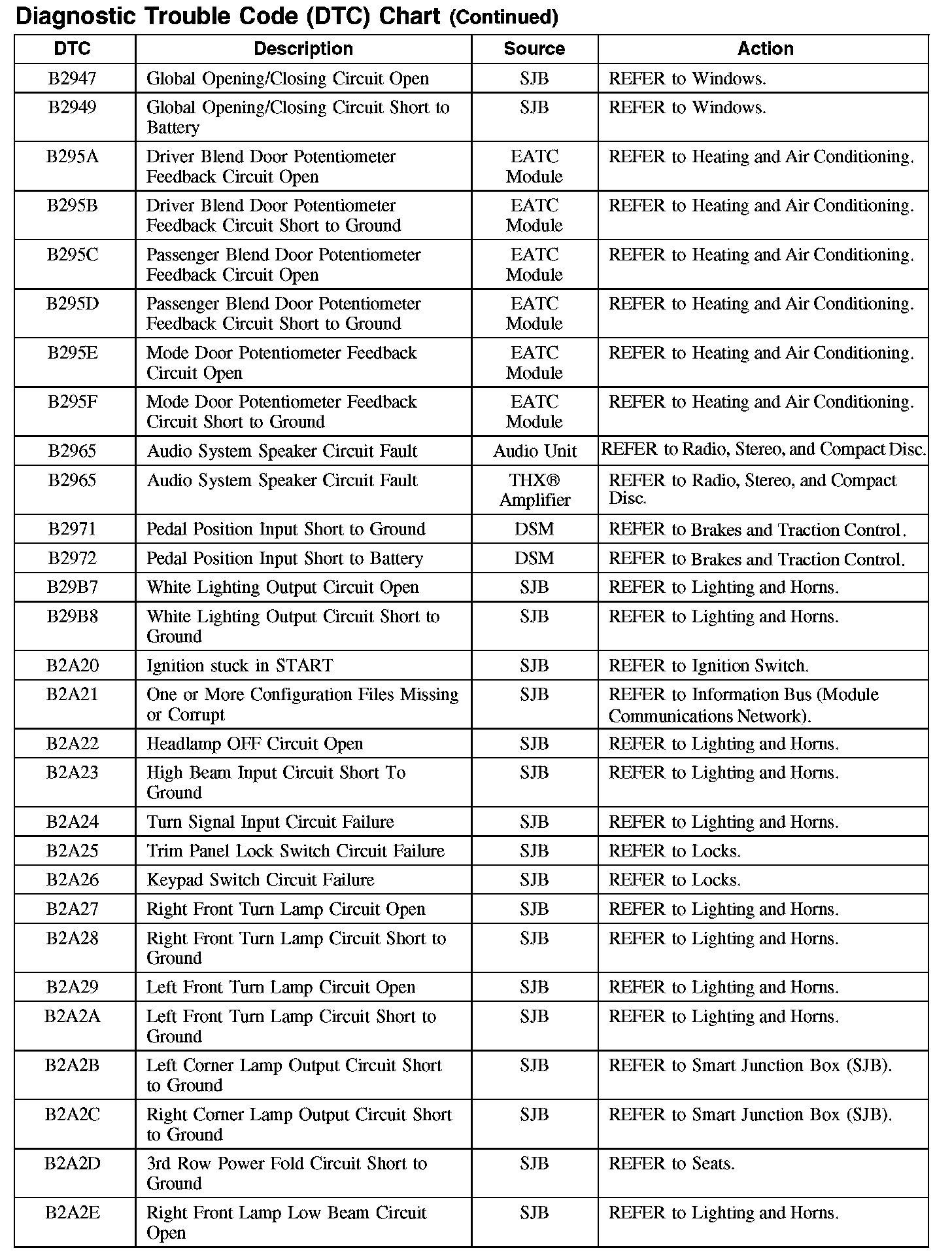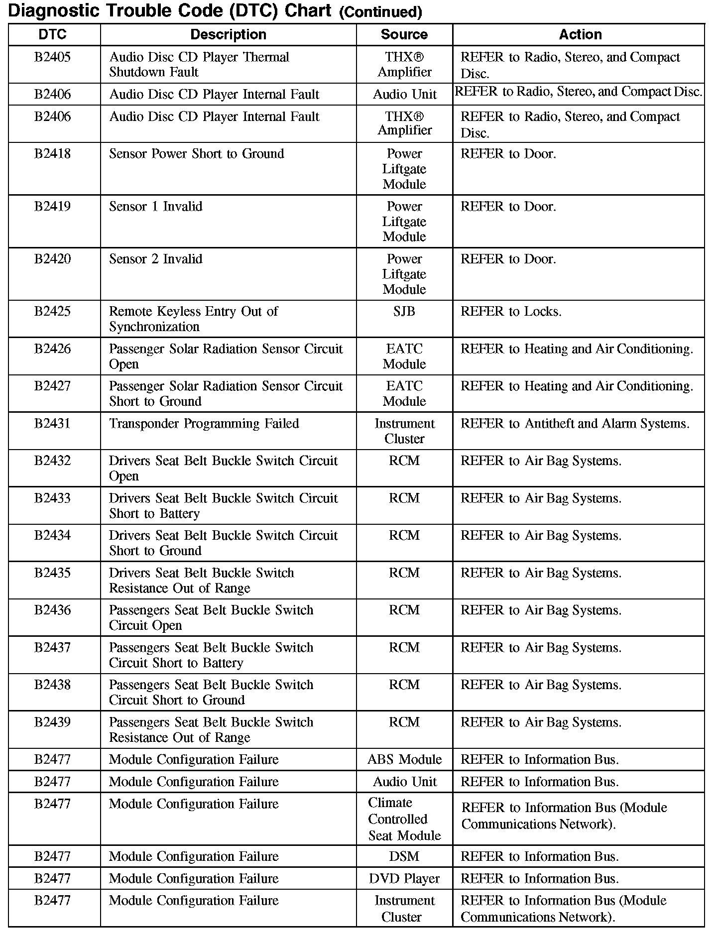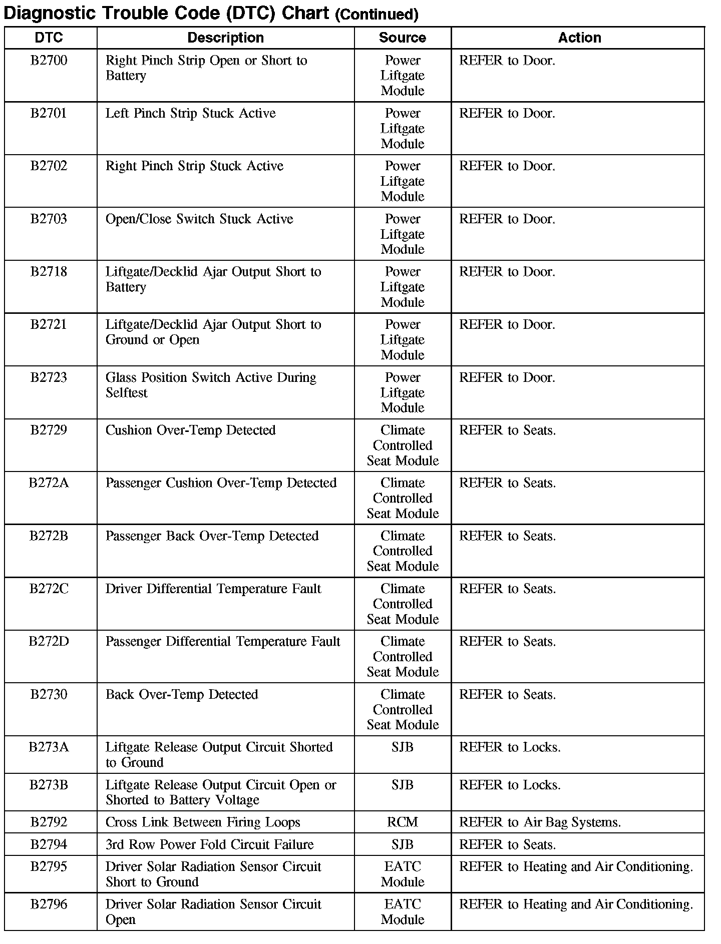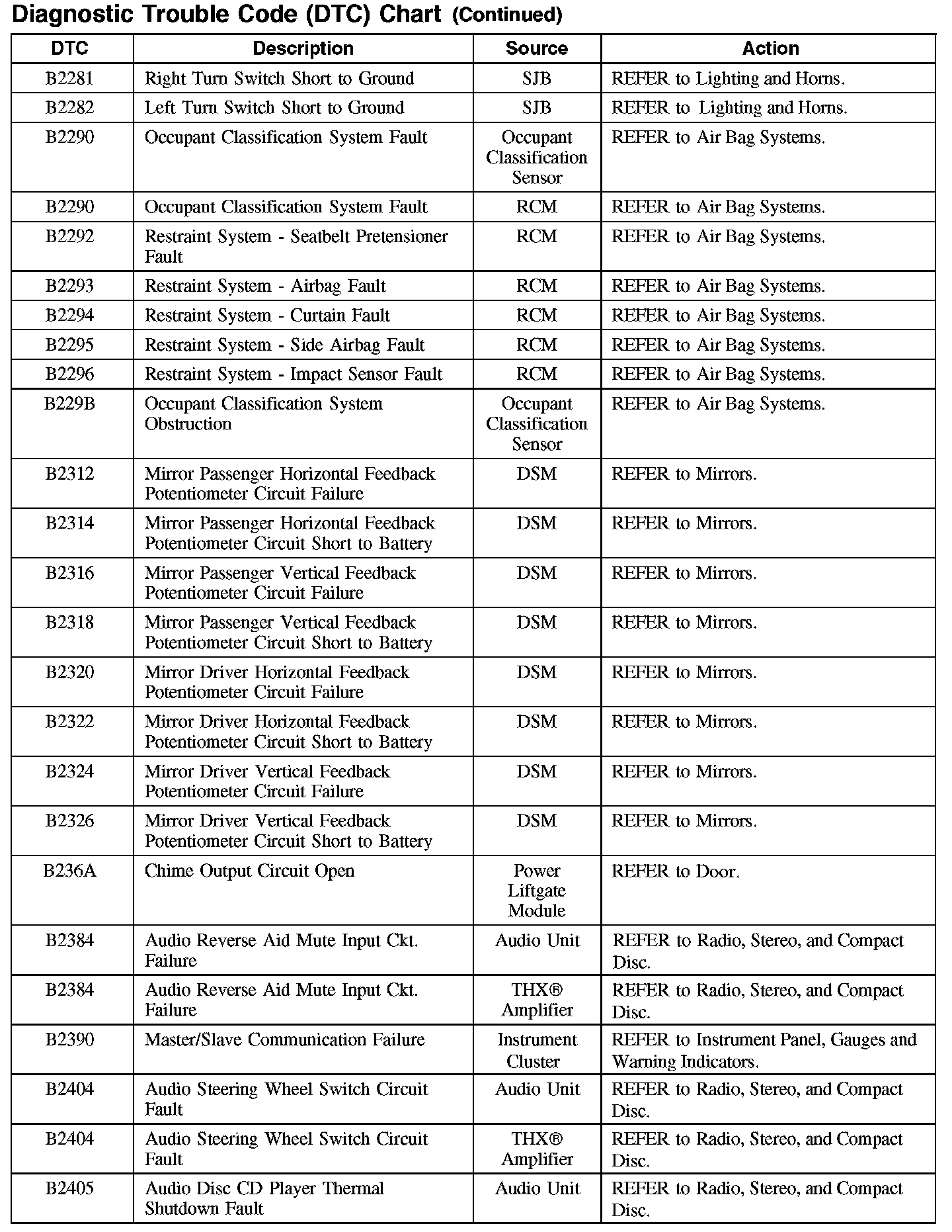 DIAGNOSTIC TROUBLE CODE (DTC) CHARTB100B-B106E: